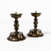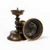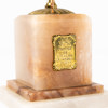 Solur med bas i alabaster samt ett par ljusstakar i malm, totalt 3 delar, höjd 28 cm och mindre