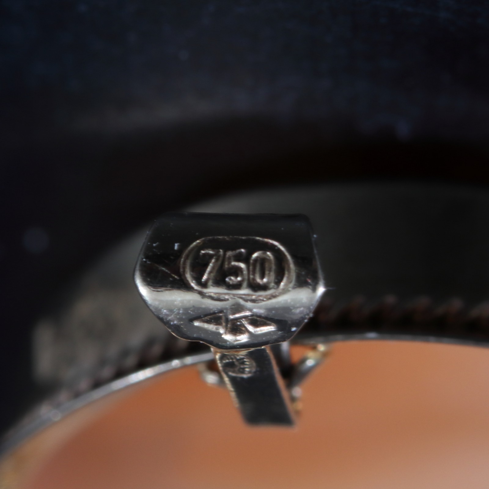 18 karat guld med snäckcamé, 39,5x31 mm, brutovikt 7,90 gram. (vån3)