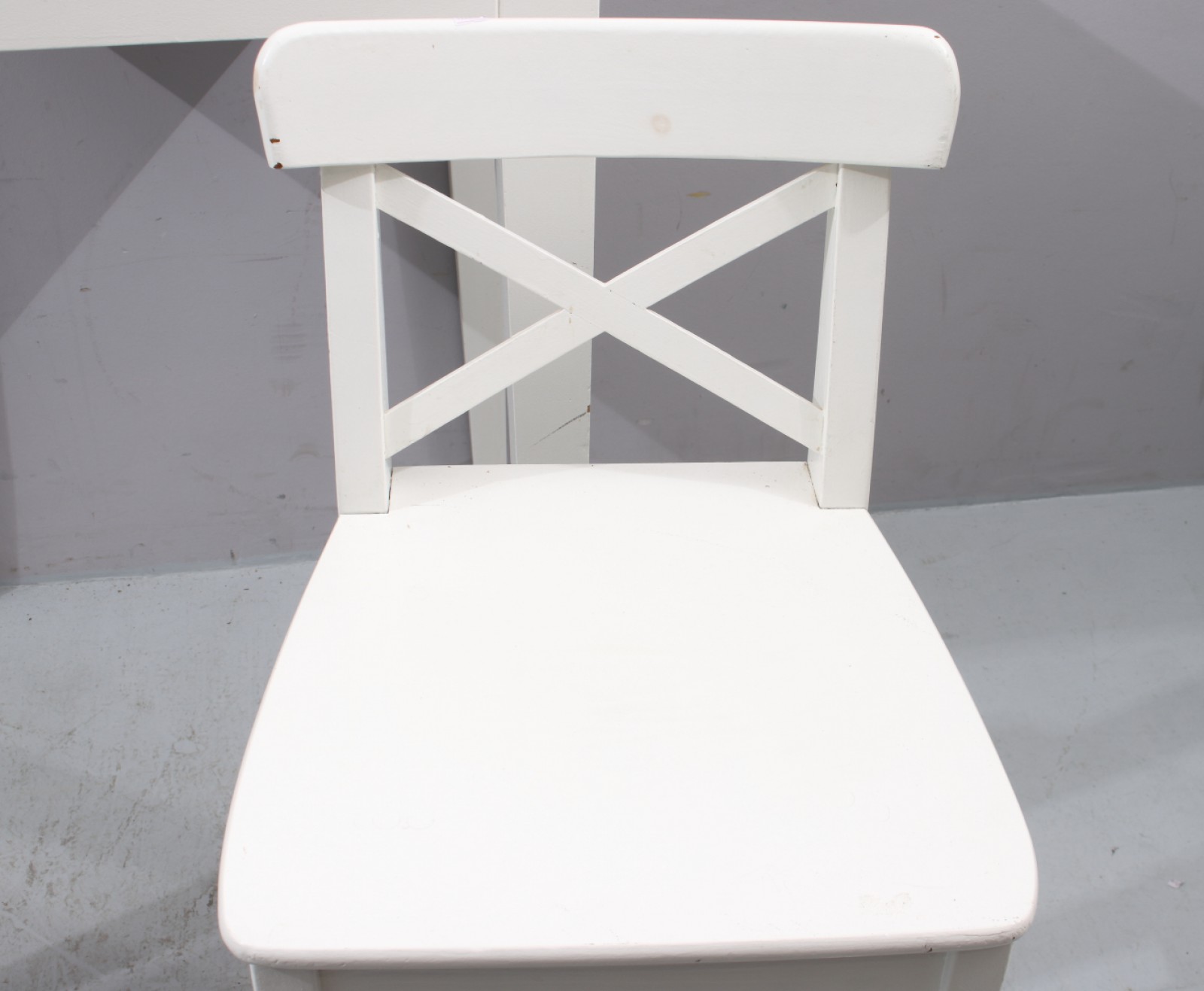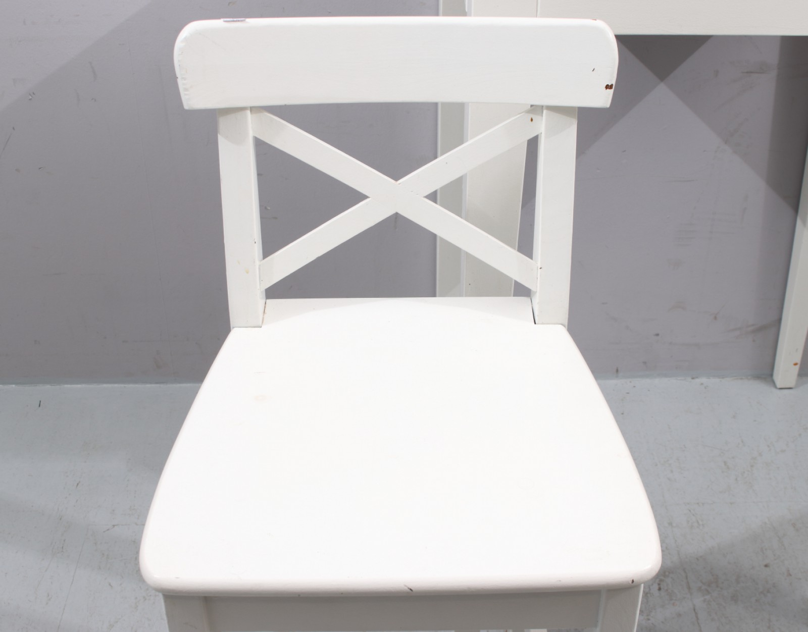 IKEA Ingolf stolar Rh:102cm B:40cm Sh:74cm. Bar bord, sliten skiva med ring märken se bild, H:108,5cm B:70cm Dj:70cm (Vån1)