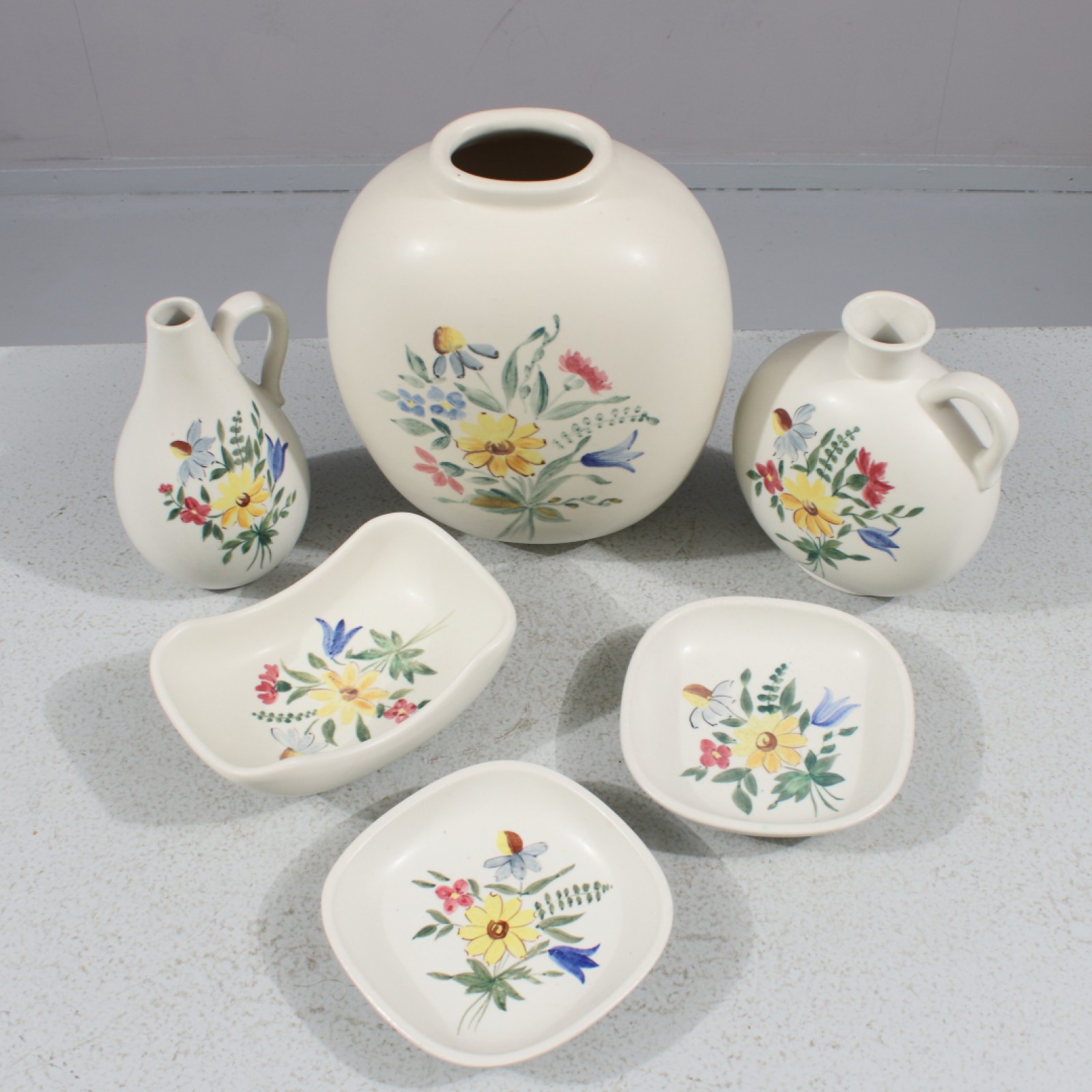 6 delar, stengods, höjd vas 23,5 cm. (vån3)
