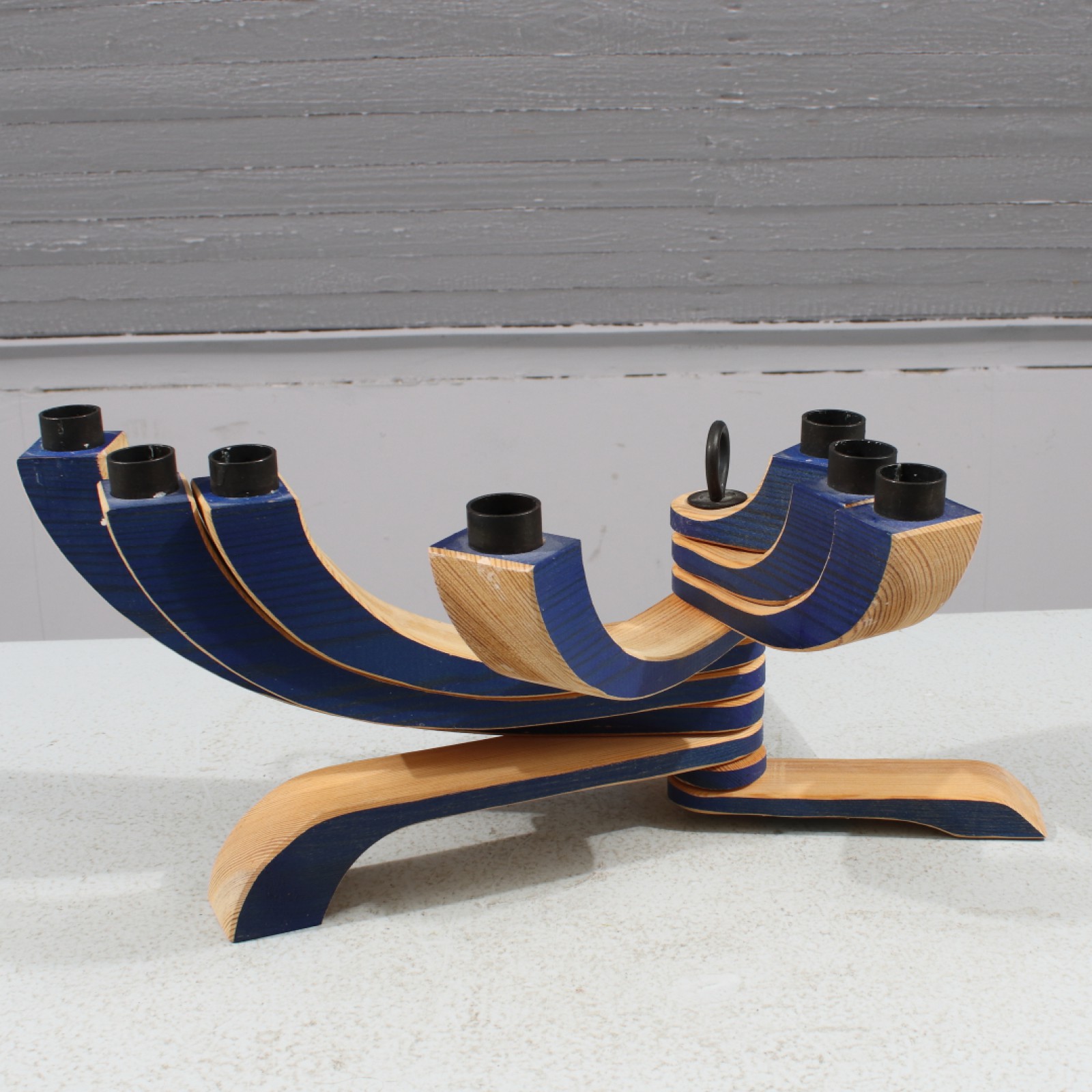 Trä, 2000-tal, 7-armad, reglerbara armar, höjd 18,5 cm, max bredd 52,5 cm. (vån3)