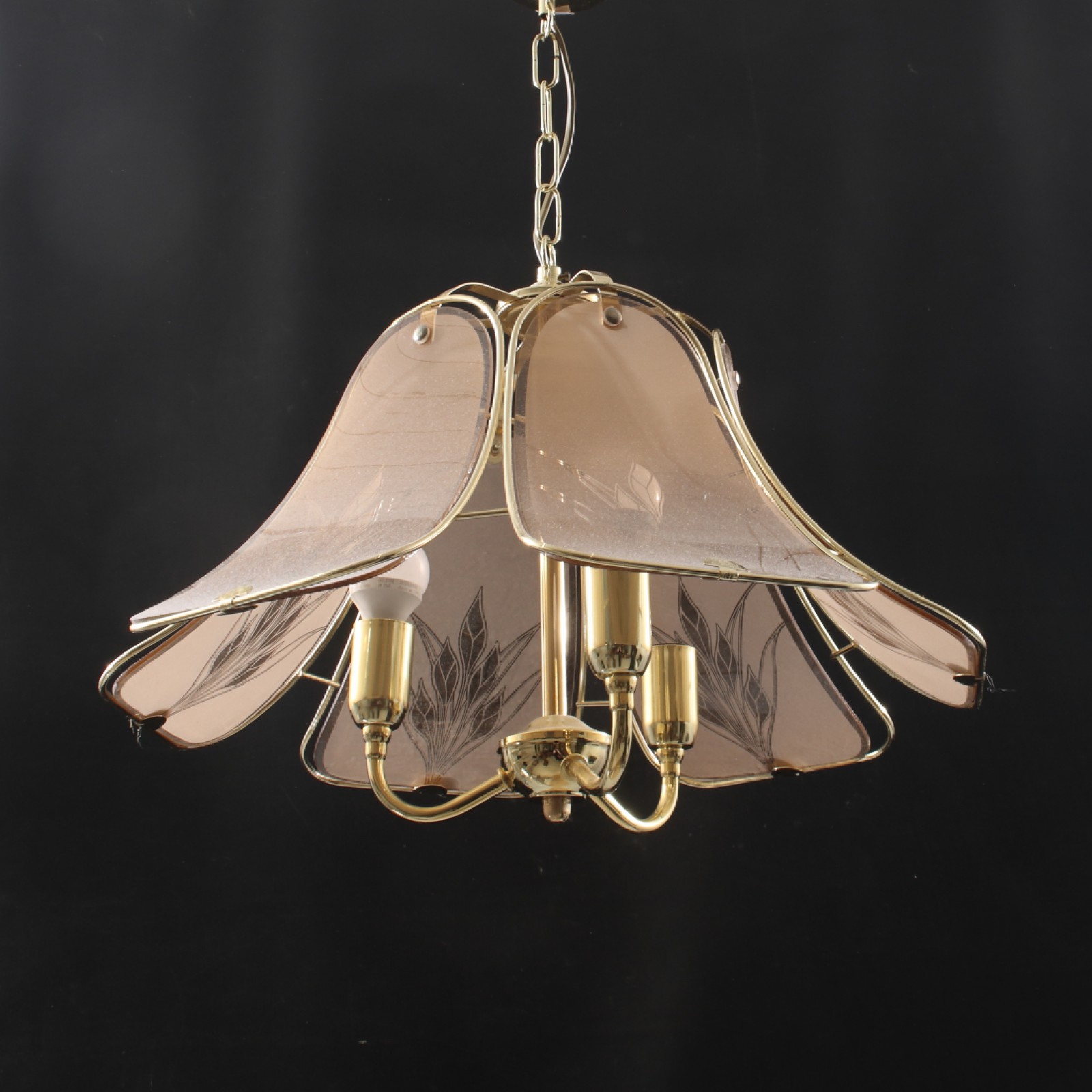 Stomme i metall, skivor i glas, 1980,90-tal, höjd utan kedja 33 cm, bredd 46 cm. (vån1)
