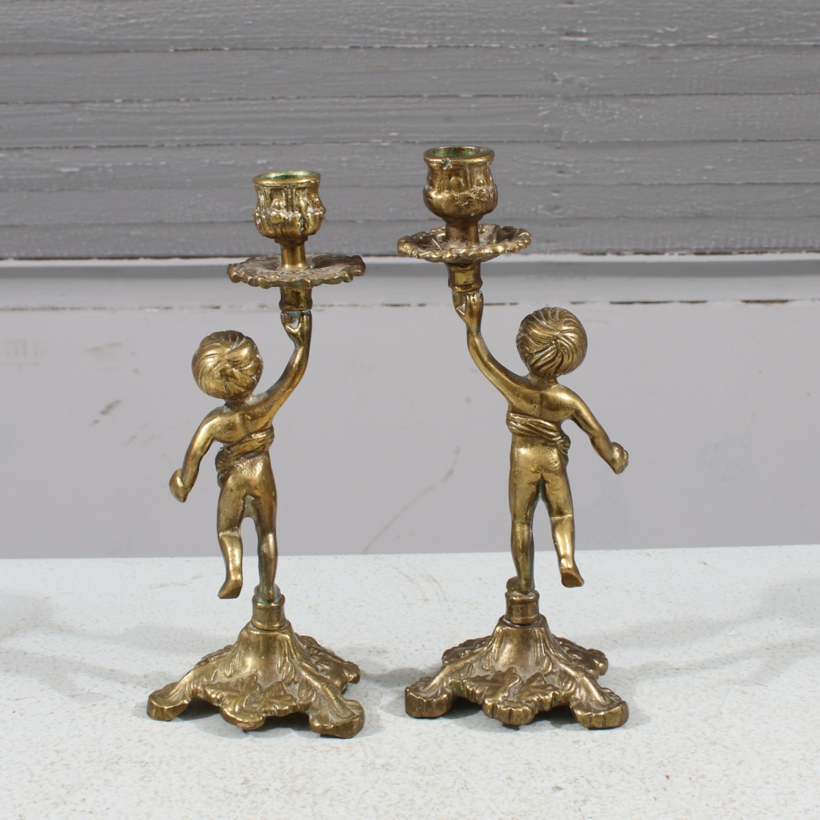 2 stycken (1 par), mässing/malm, 1900-talets andra hälft, höjd 23 cm. (vån3)