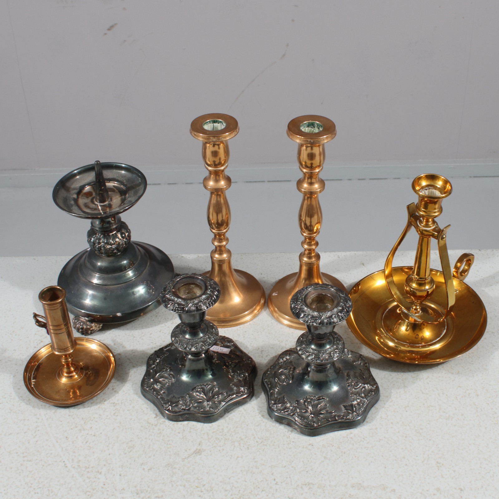 7 stycken, malm och nysilver, höjd 22,5 cm och lägre. (vån3)
