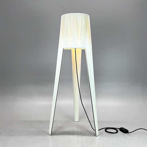 Golvlampa från Fambuena, modell Dress. Formgiven av Jehs + Laub. Lampan har metallstomme med vitt satinband. Dimbar. Ljuskälla E27.