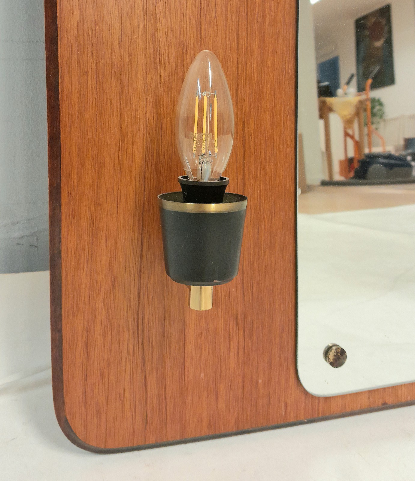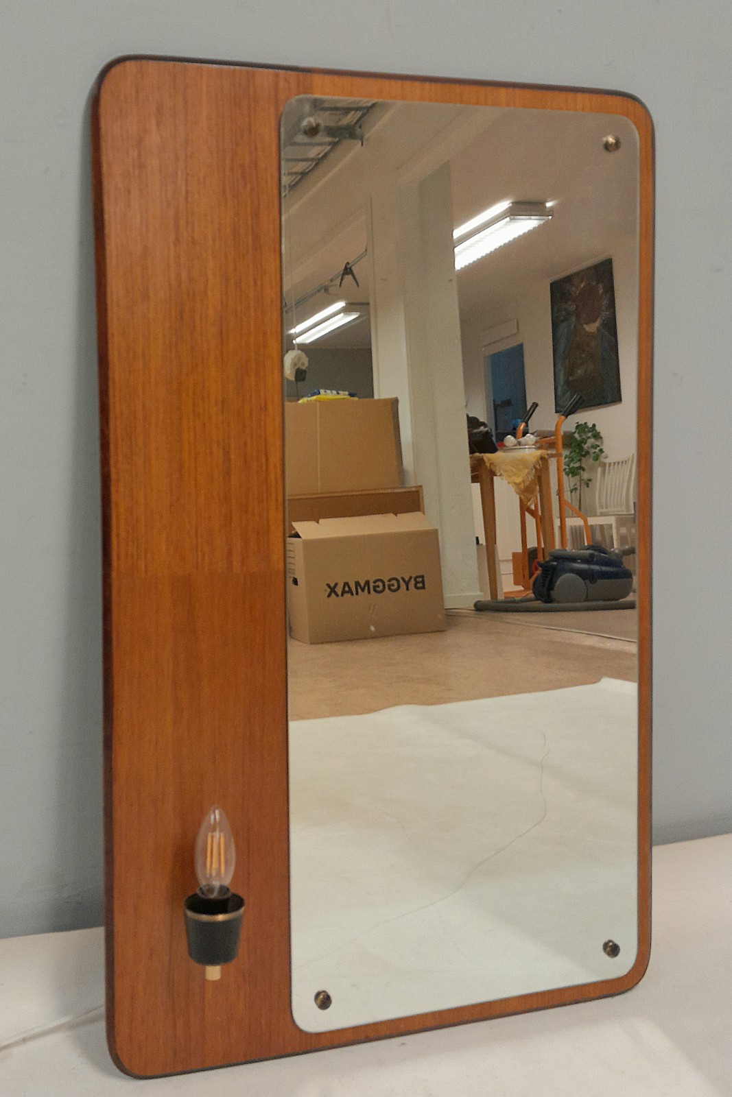 SPEGEL MED BELYSNING, TEAK, ERIKSMÅLA 1950-TAL