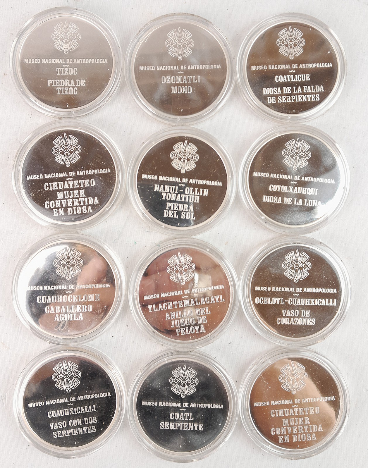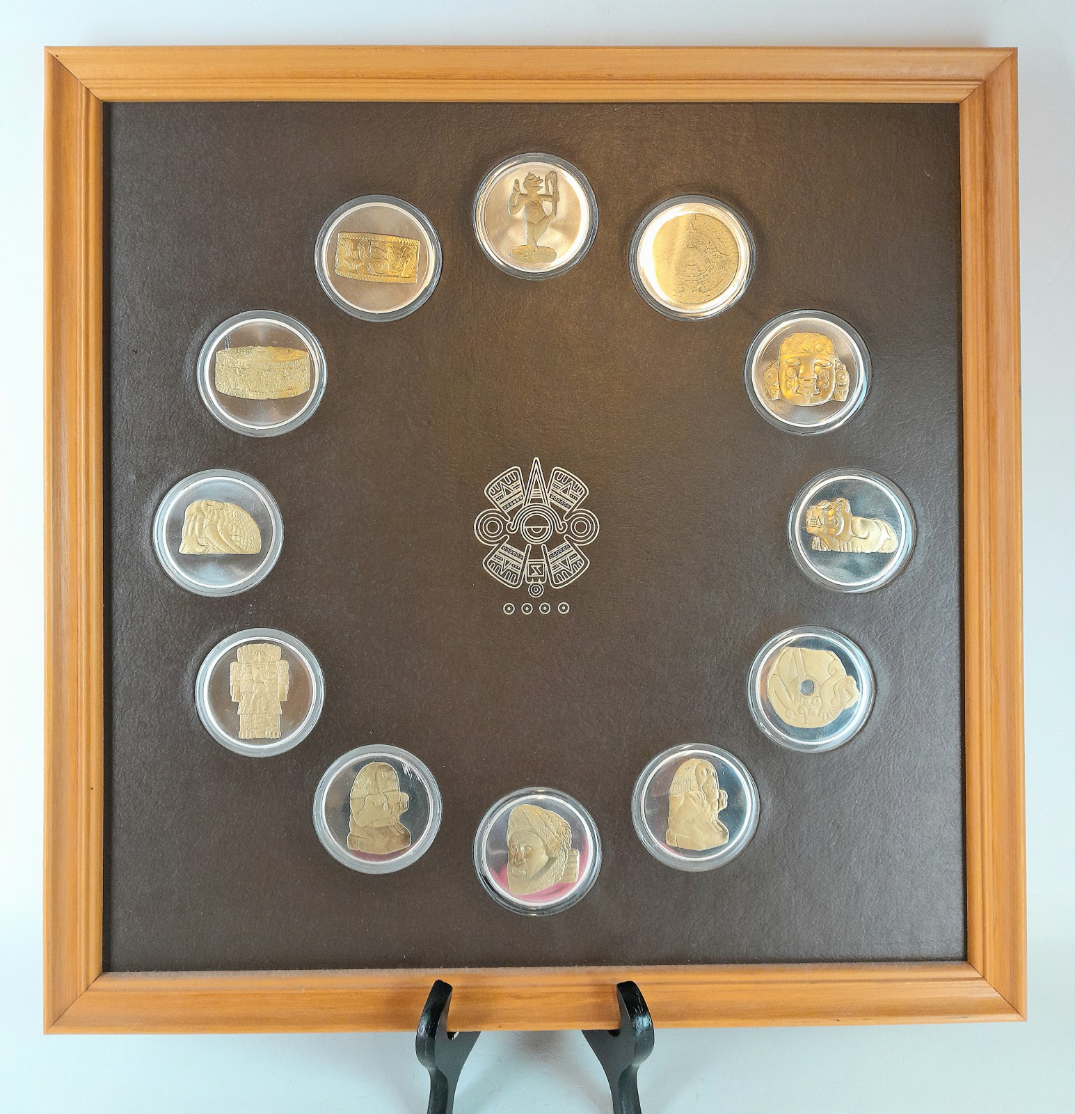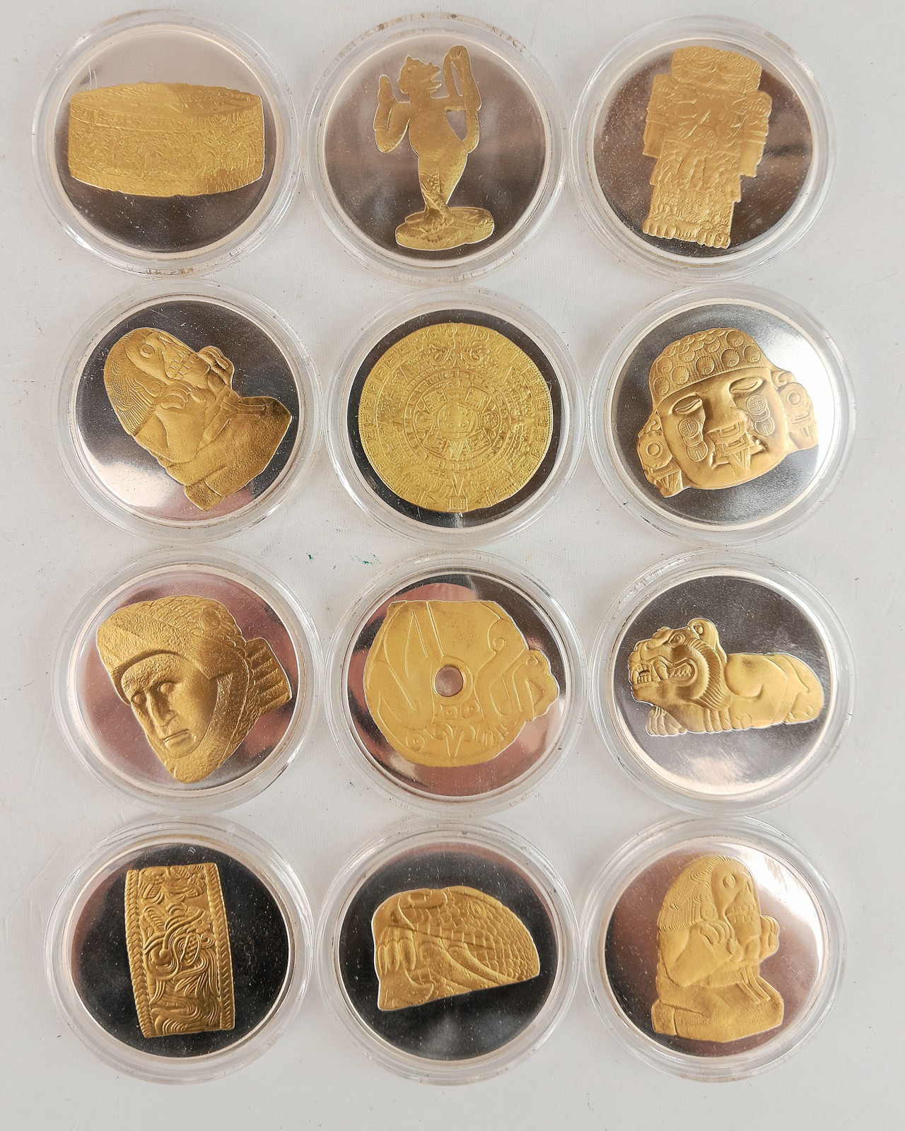 Bilder FRANKLIN MINT, "AZTEKERNAS SKATTER"- 12 KONSTMEDALJER I SILVER OCH GULD