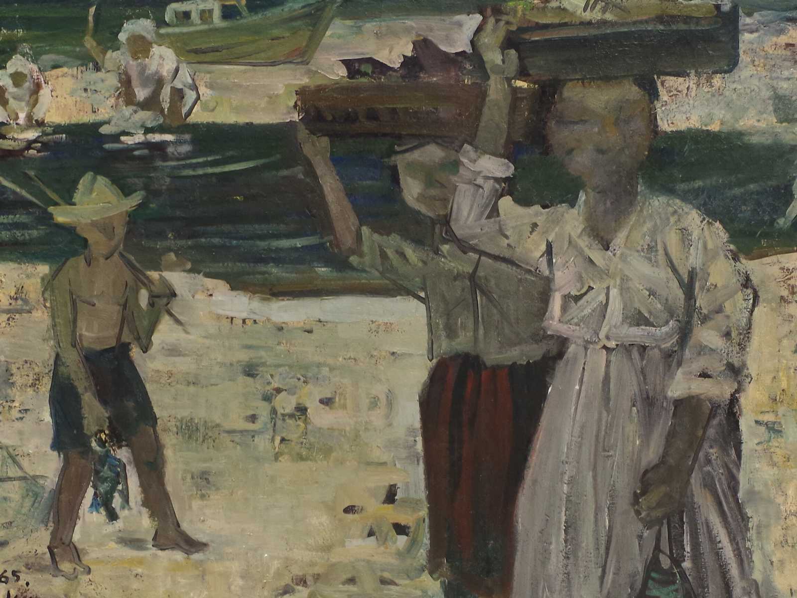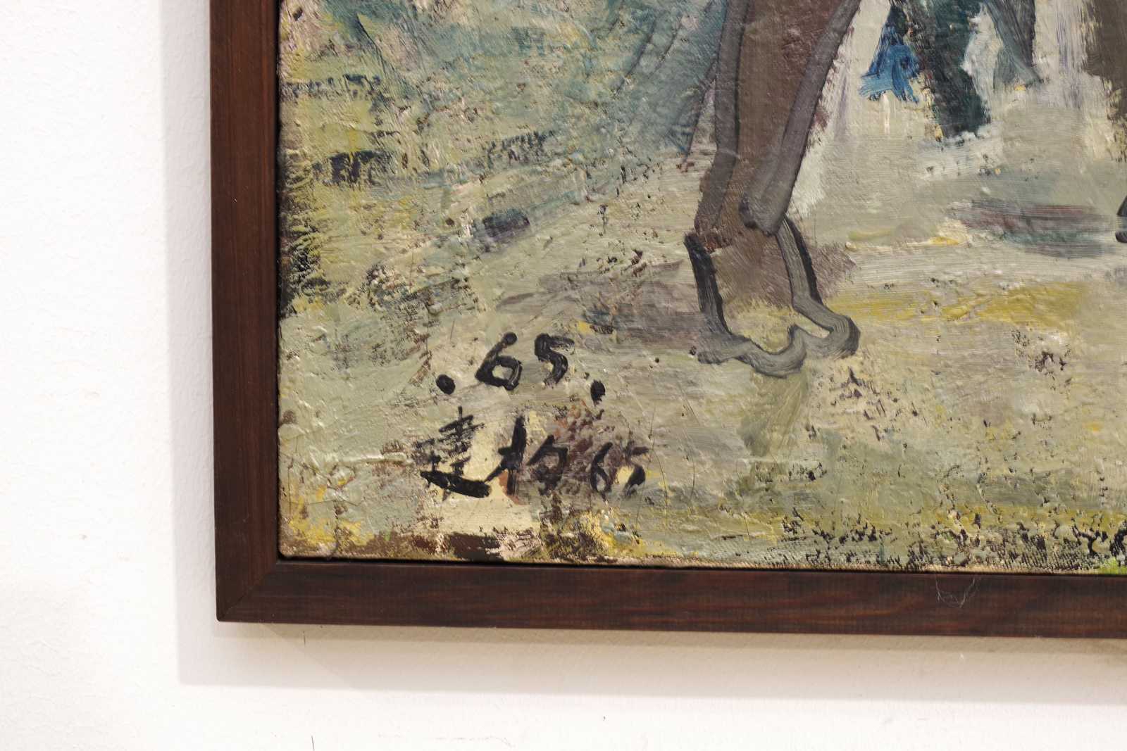Auktioner Konst & Grafik TAVLA, oidentifierad konstnär, olja på duk, signerad. 128x80cm bildytans mått