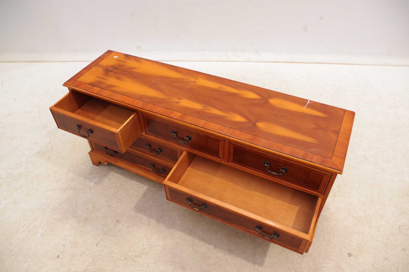 BYRÅ 7-lådig, engelsk stil, 1900-talets andra hälft. H:64x 138x 38cm. Bruksslitage