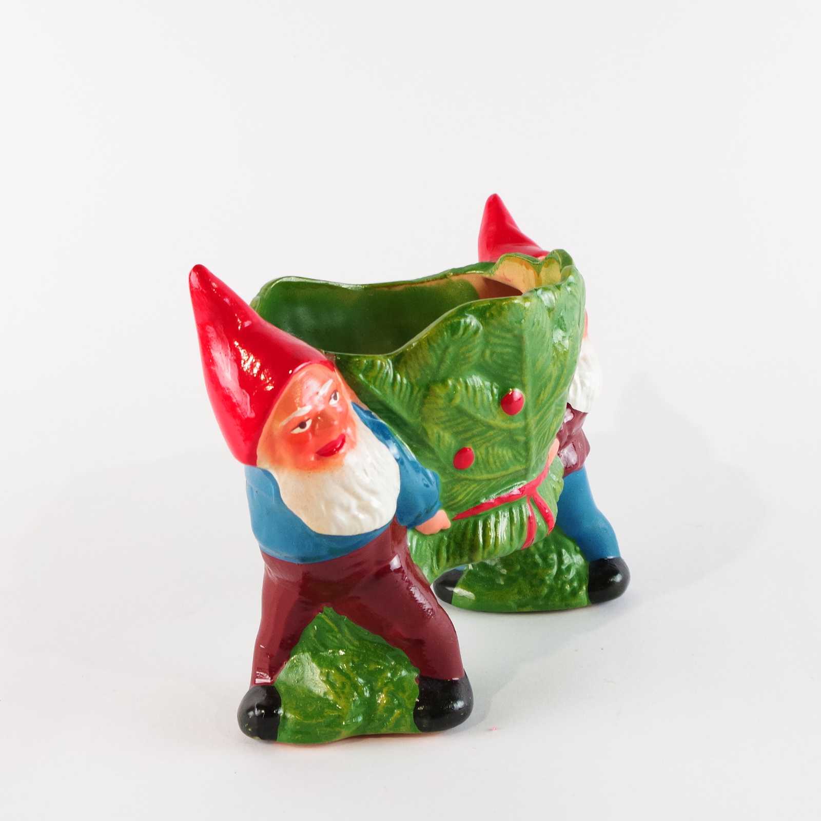 Auktioner Skulpturer & Konsthantverk TOMTAR MED KRUKA, Gräfenroda, terrakotta. H: 17,5cm, D: 12-13 cm kruka.