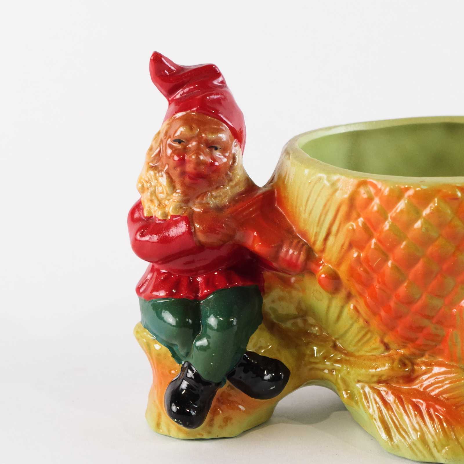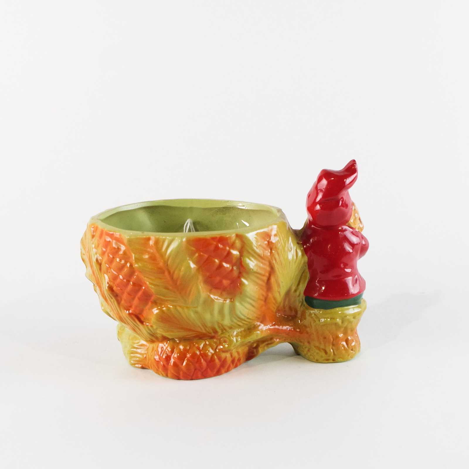 TOMTE MED SKÅL, äldre. H: 11,5cm. L: 16cm. D: 10cm(skål).