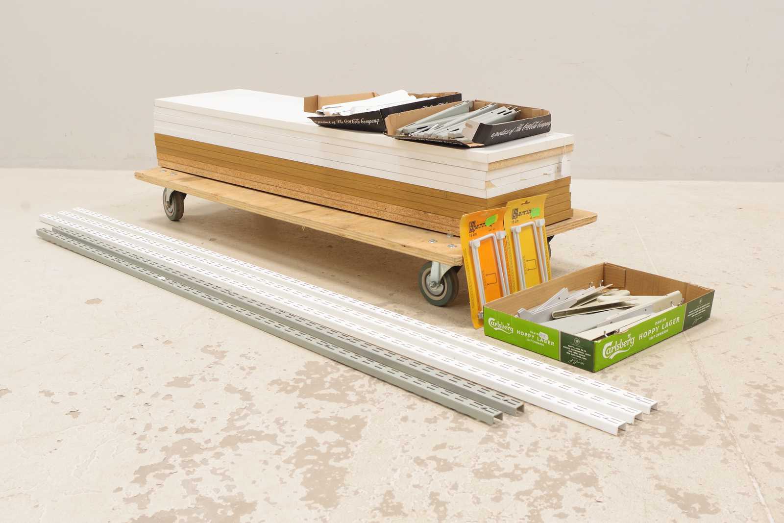 Bilder HYLLSYSTEM 3st L:192cm + 2st konsoler L:160cm, 10st hyllplan 120x30cm