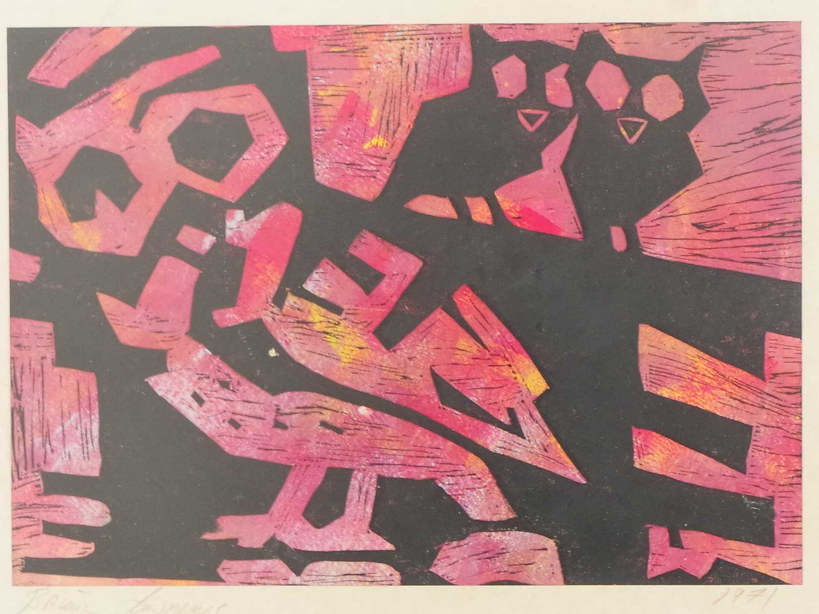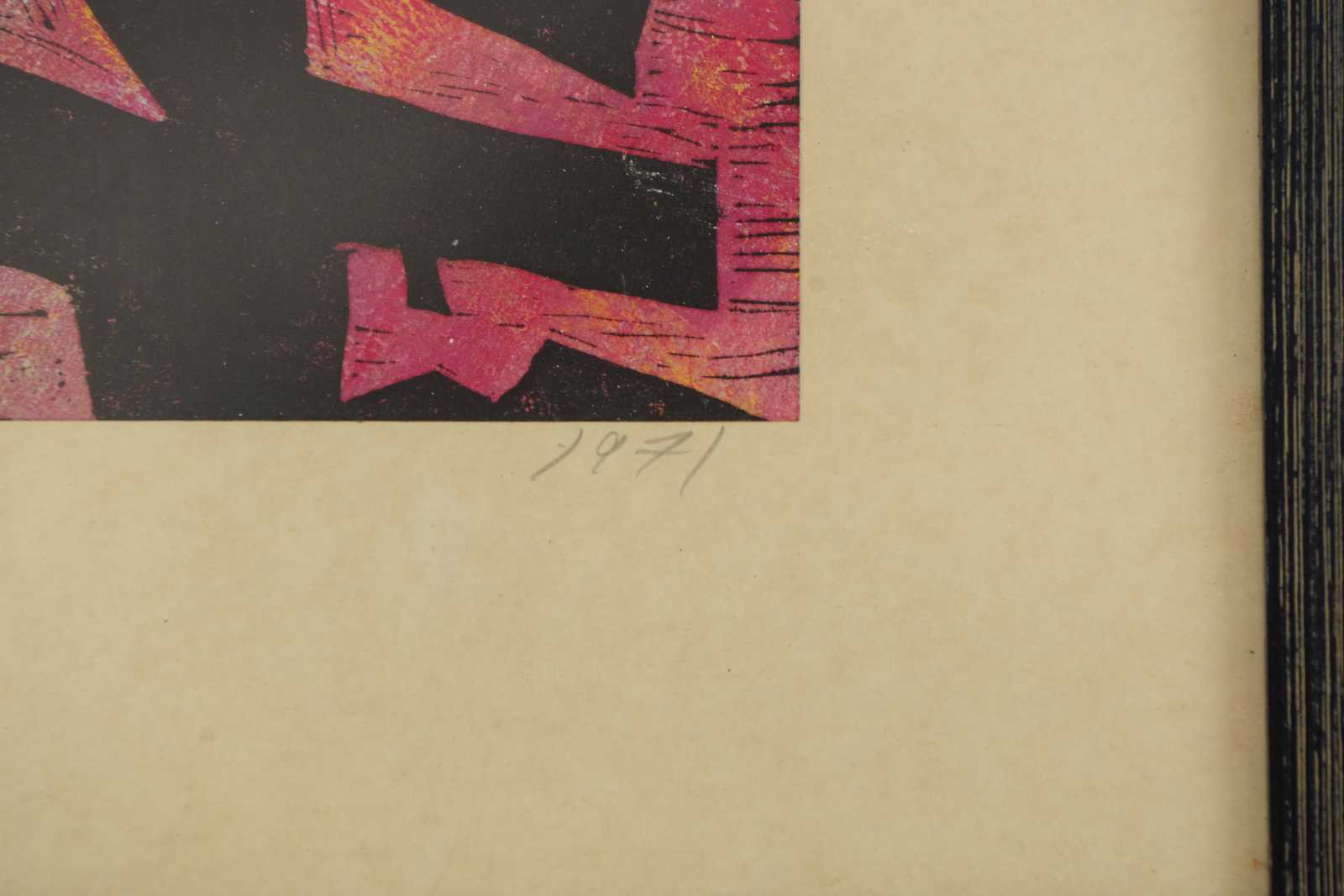 Auktioner Konst & Grafik TAVLA Oidentifierad konstnär, träsnitt, signerad & daterad 1971. 30x21cm bildytans mått