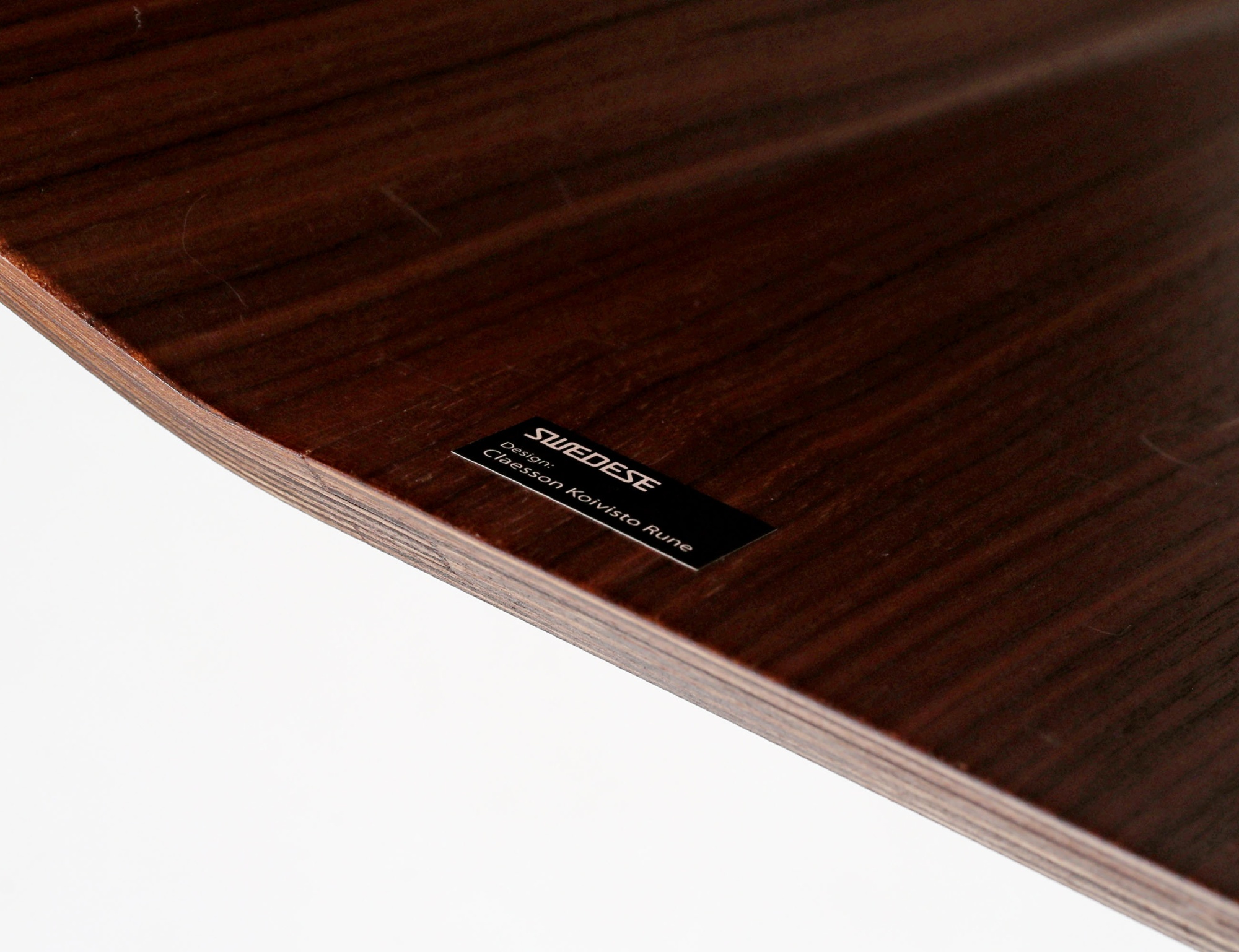 för Swedese, skiktlimmad valnöt, etikett samt brännstämpel, höjd 28, 120x118
