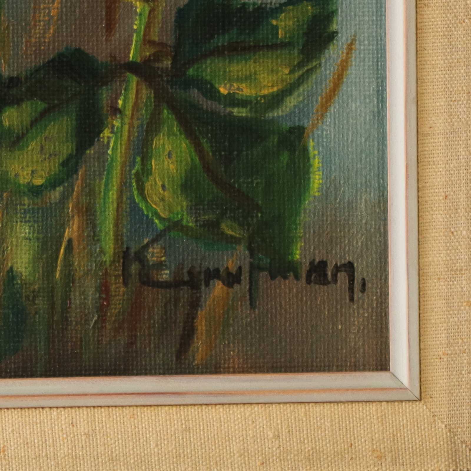 TAVLA Kerstin Grufman, olja på pannå. 20x38cm.