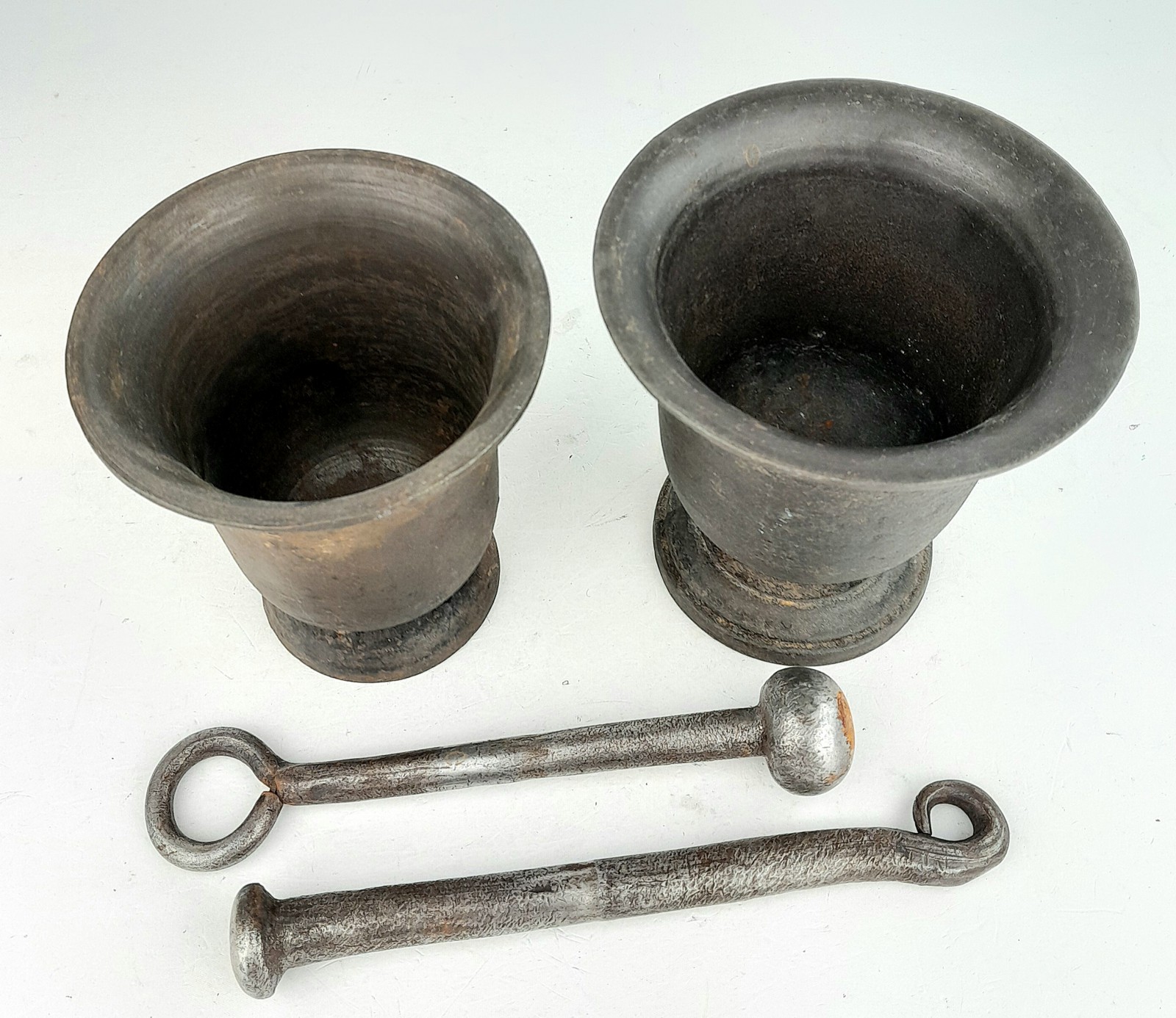 MORTLAR, 2 ST GJUTJÄRN, 1700/1800