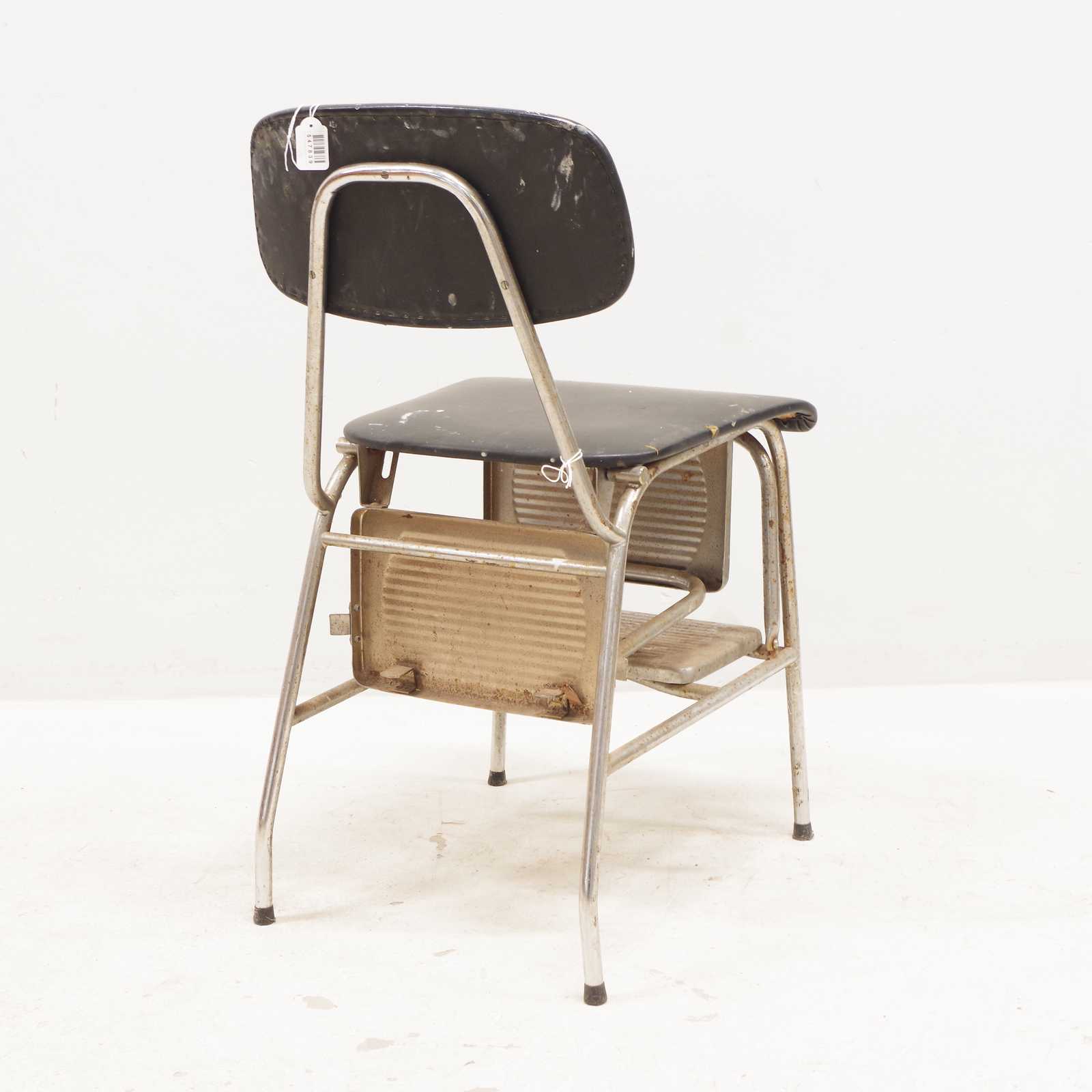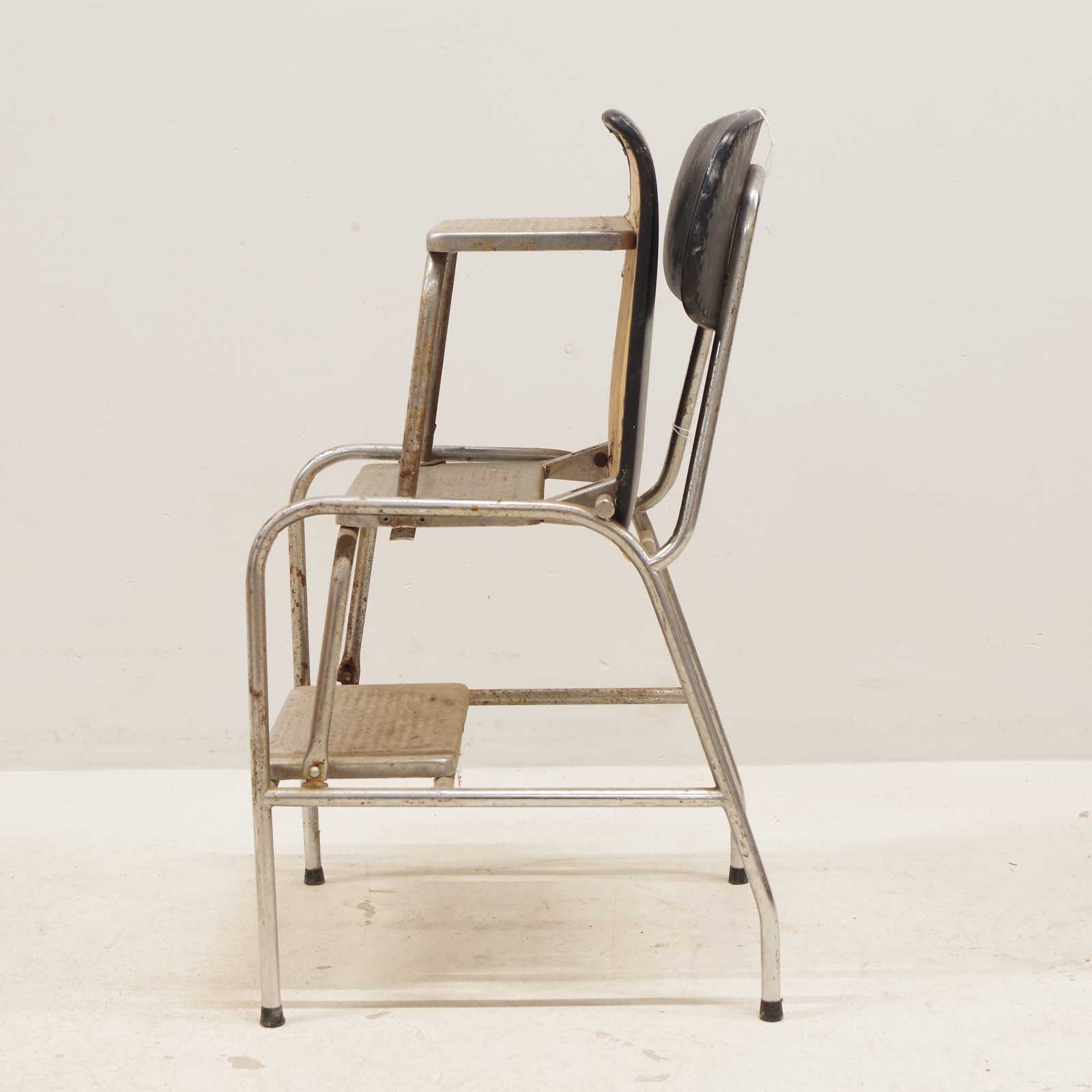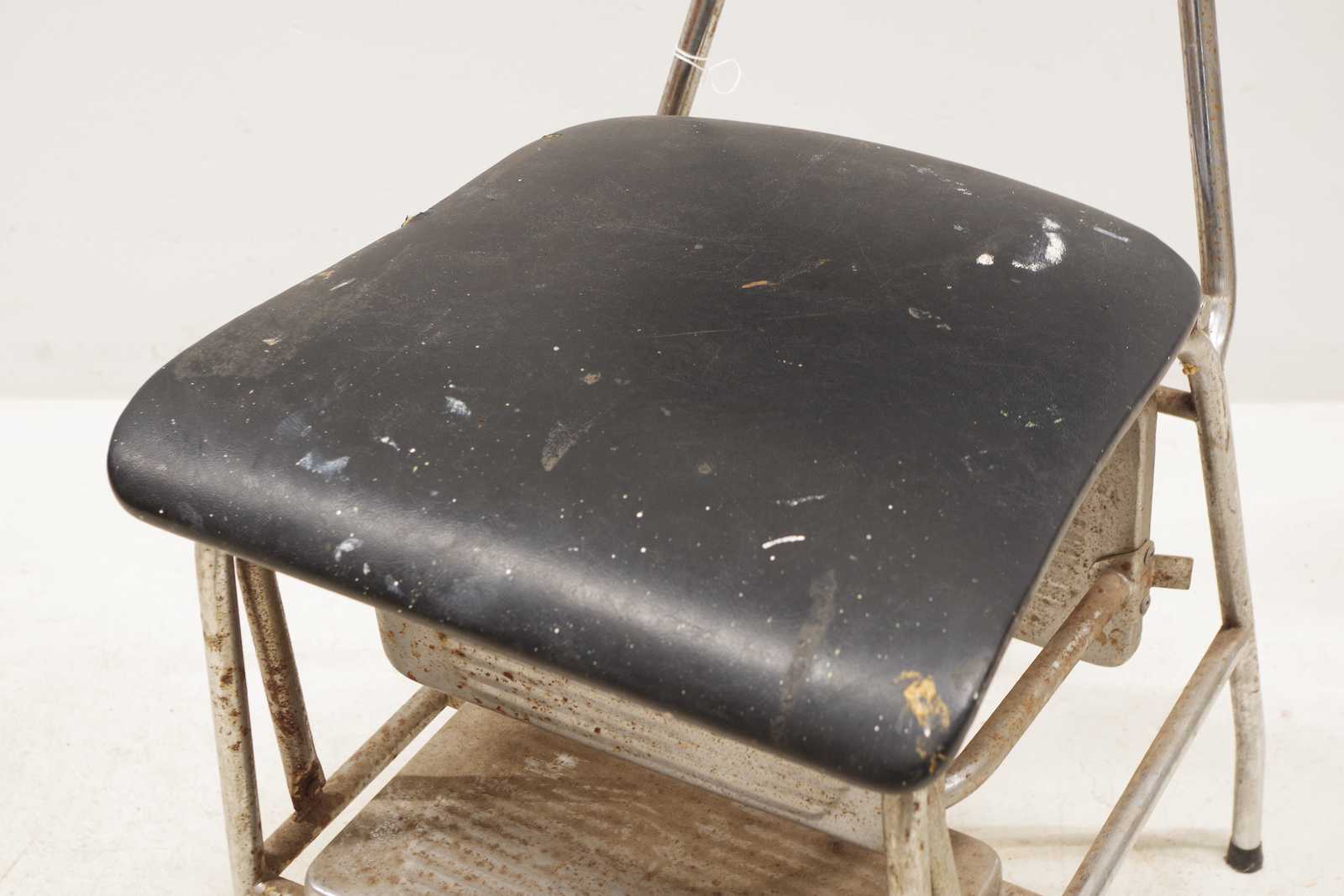 Bilder STOL vändbar till trappall, stålrörsben & klädd i galon. (bruksslitage, fläckar, rostig)