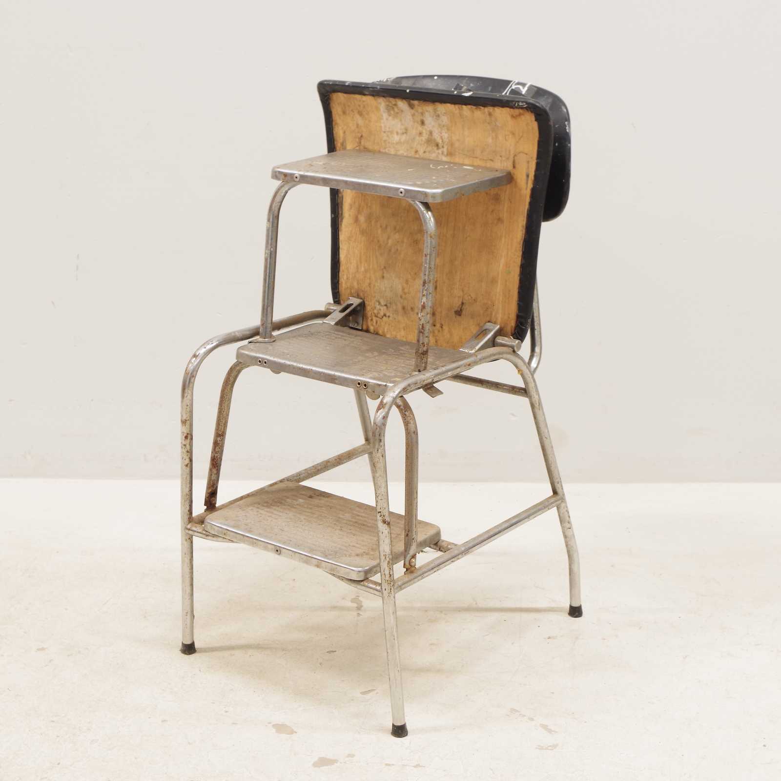 STOL vändbar till trappall, stålrörsben & klädd i galon. (bruksslitage, fläckar, rostig)