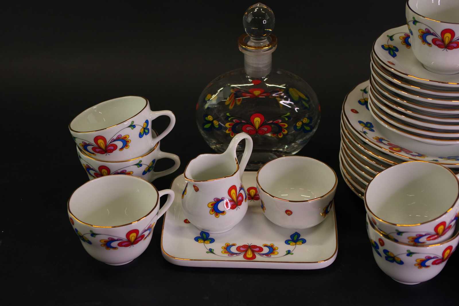 Bilder LIKÖRKARAFF & KAFFESERVIS Porsgrund "Bonde Rose" 19 delar