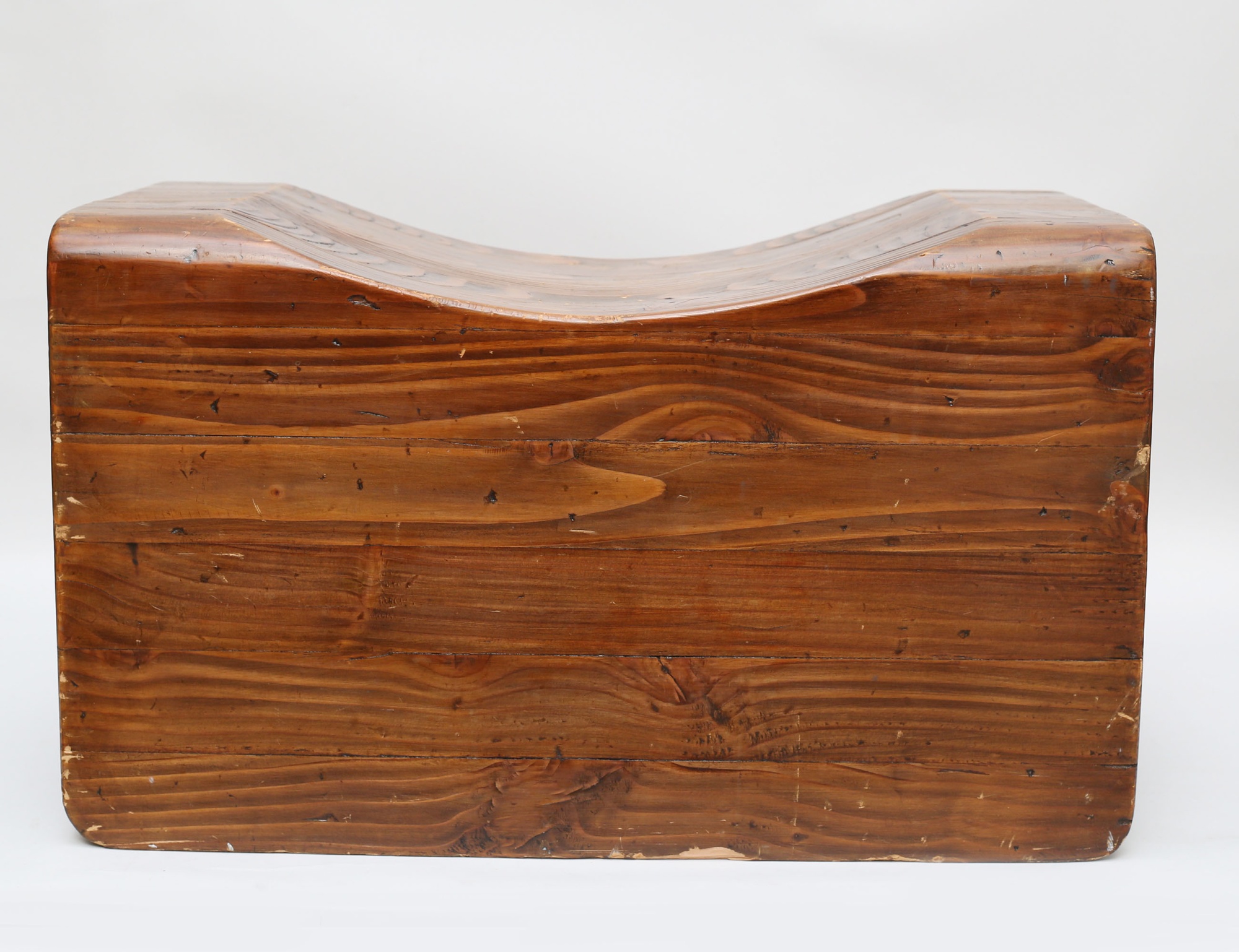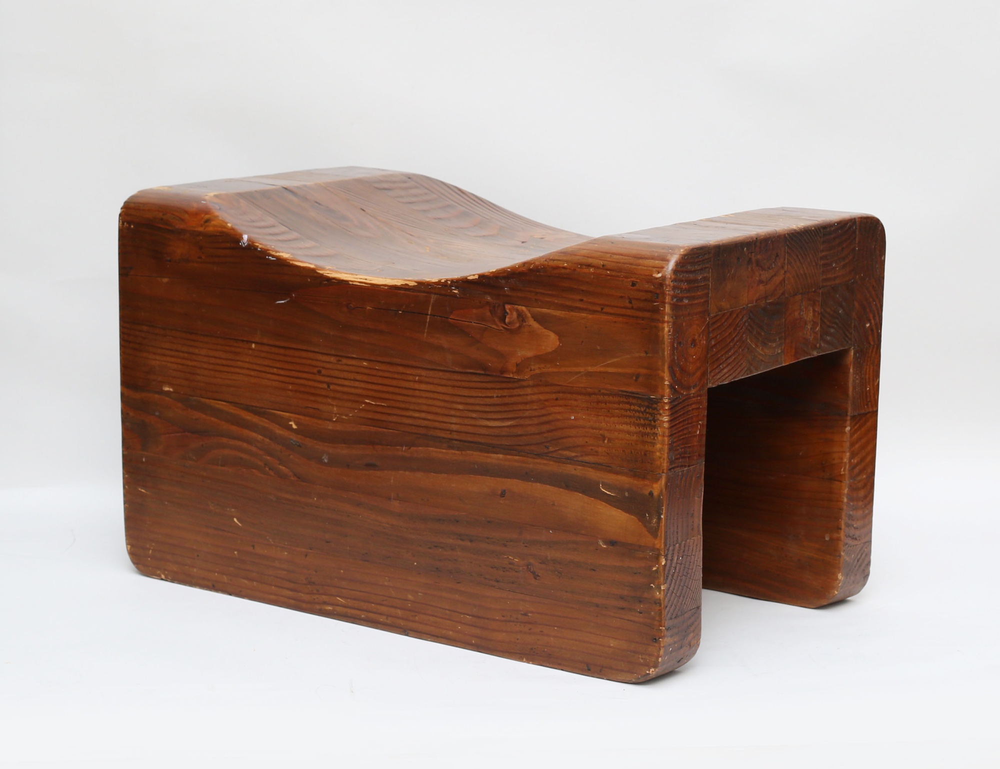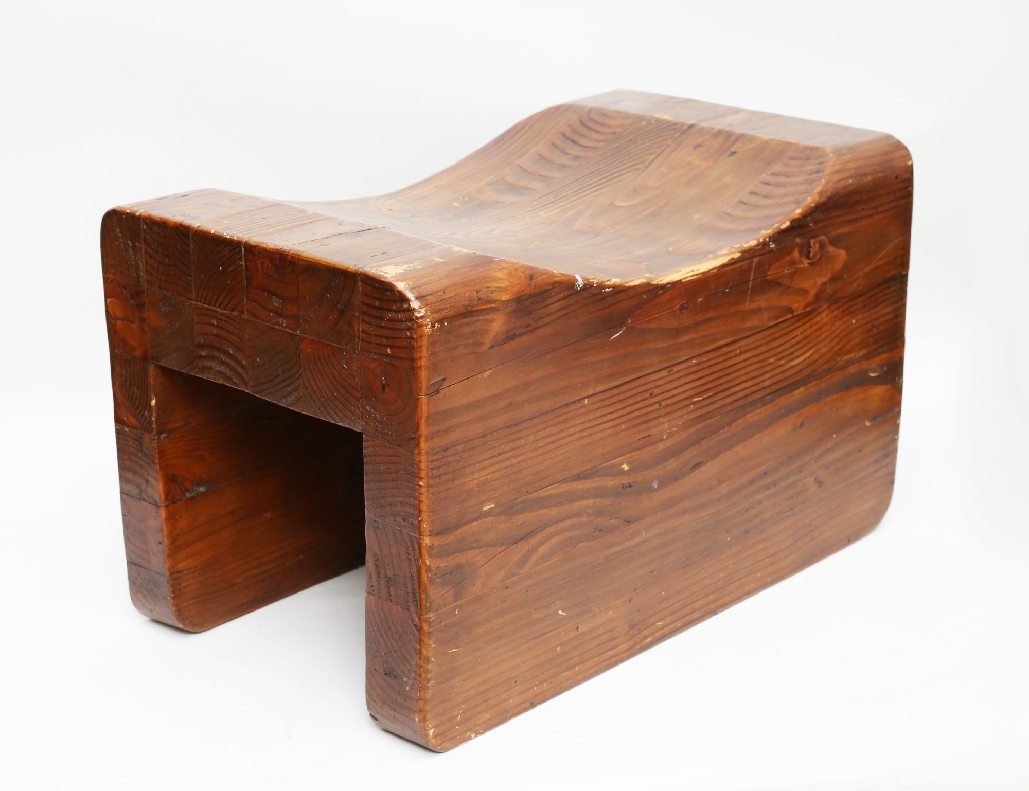 betsad furu, skålad sits, höjd 36, bredd 60x35 (bruksslitage, avslag)