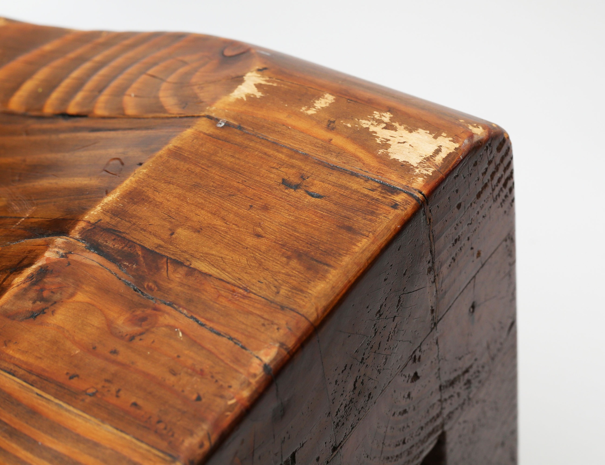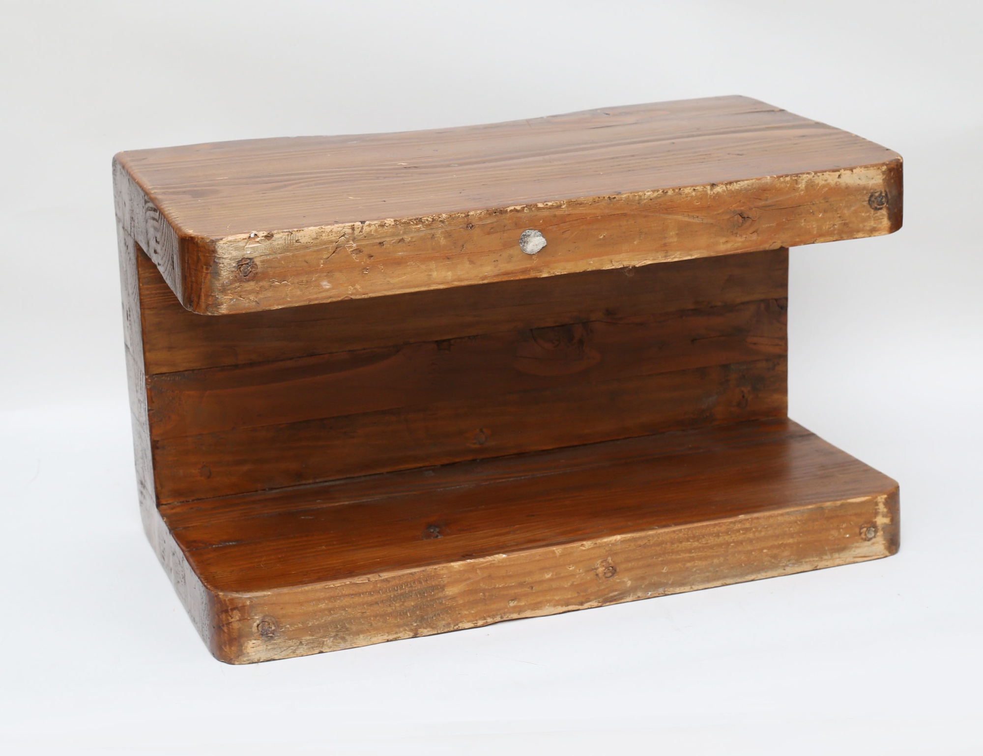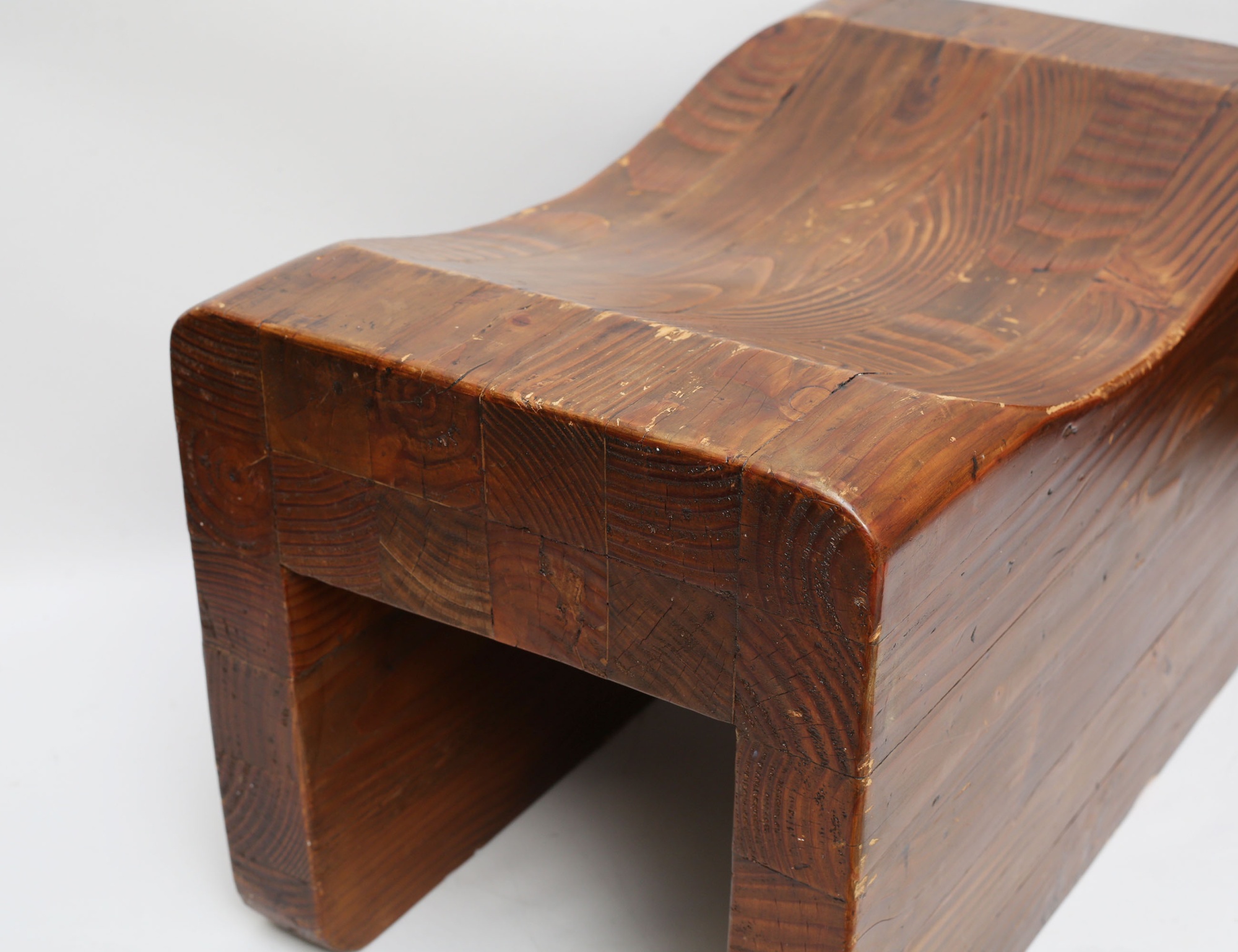 betsad furu, skålad sits, höjd 36, bredd 60x35 (bruksslitage, avslag)