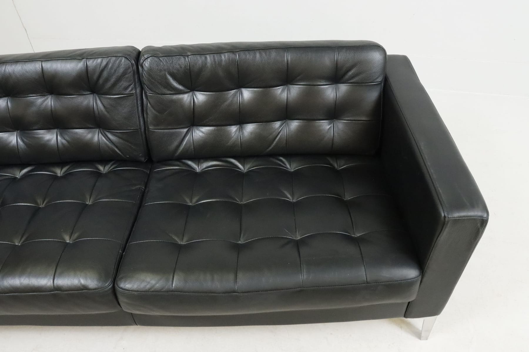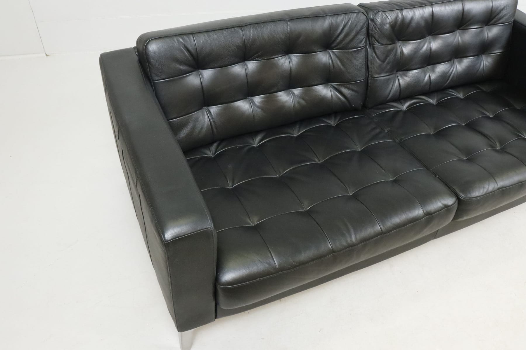 Skinnsoffa, 3-sits, "Karlstad", svart skinn, IKEA.