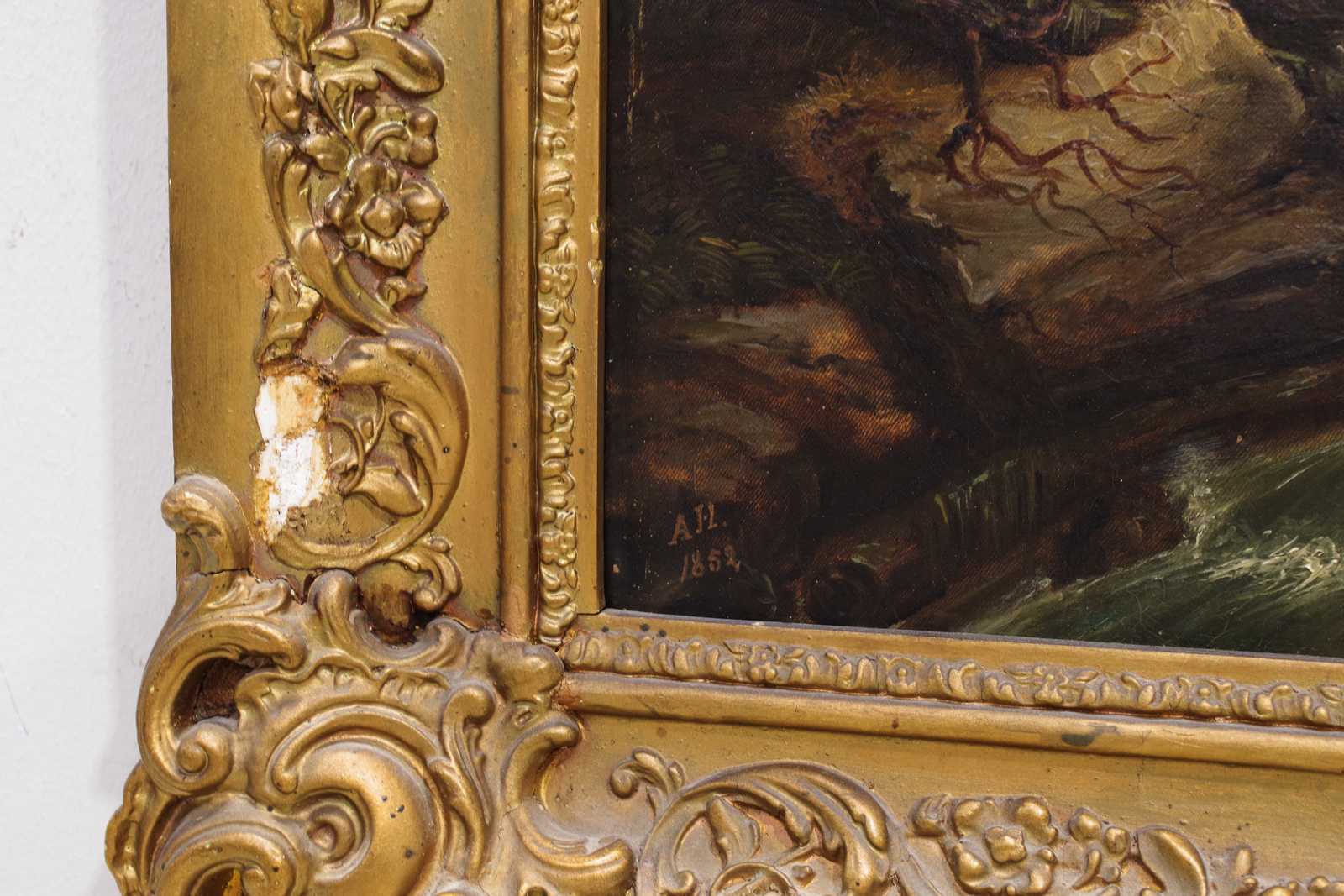 Auktioner Konst & Grafik TAVLA, Anders Hallin, olja på duk, signerad samt daterad 1852. 40x51cm bildmått. slitage, hål.