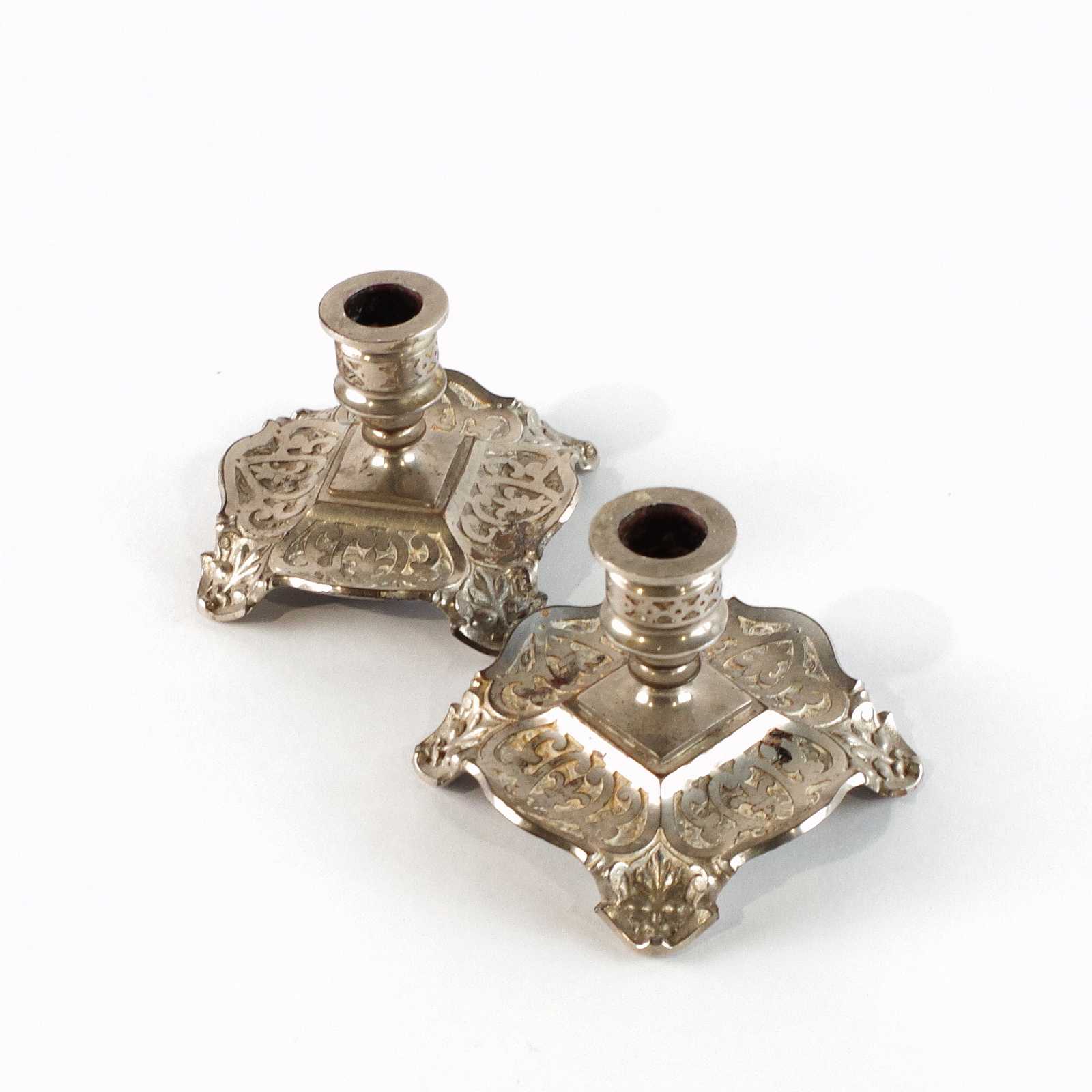 LJUSSTAKAR 1 par äldre, vitmetall. B:10cm H:8cm.