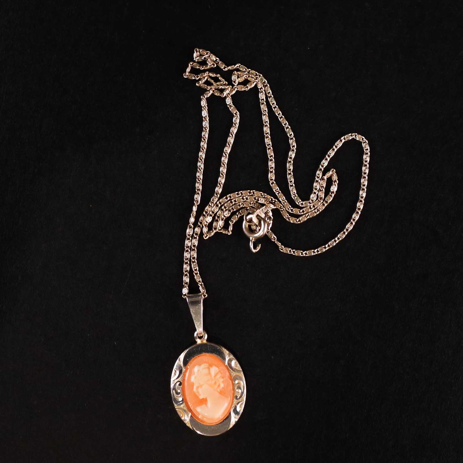 Auktioner Guld, Silver & Smycken HALSBAND silver med caméhänge sterling silver. L:45 cm, 16x20mm hänge.