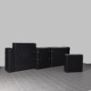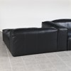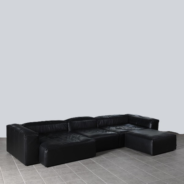 Svart läderklädsel, längd 400, djup 120-150, sitthöjd 38, puff 90x90 cm