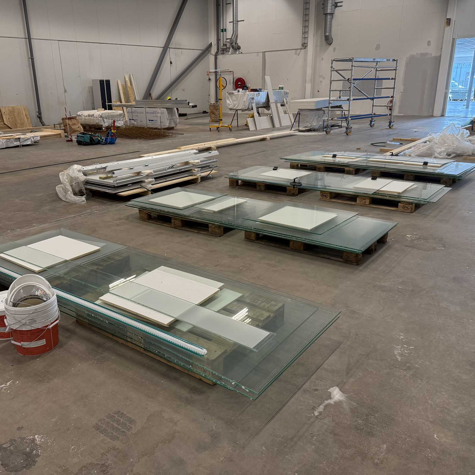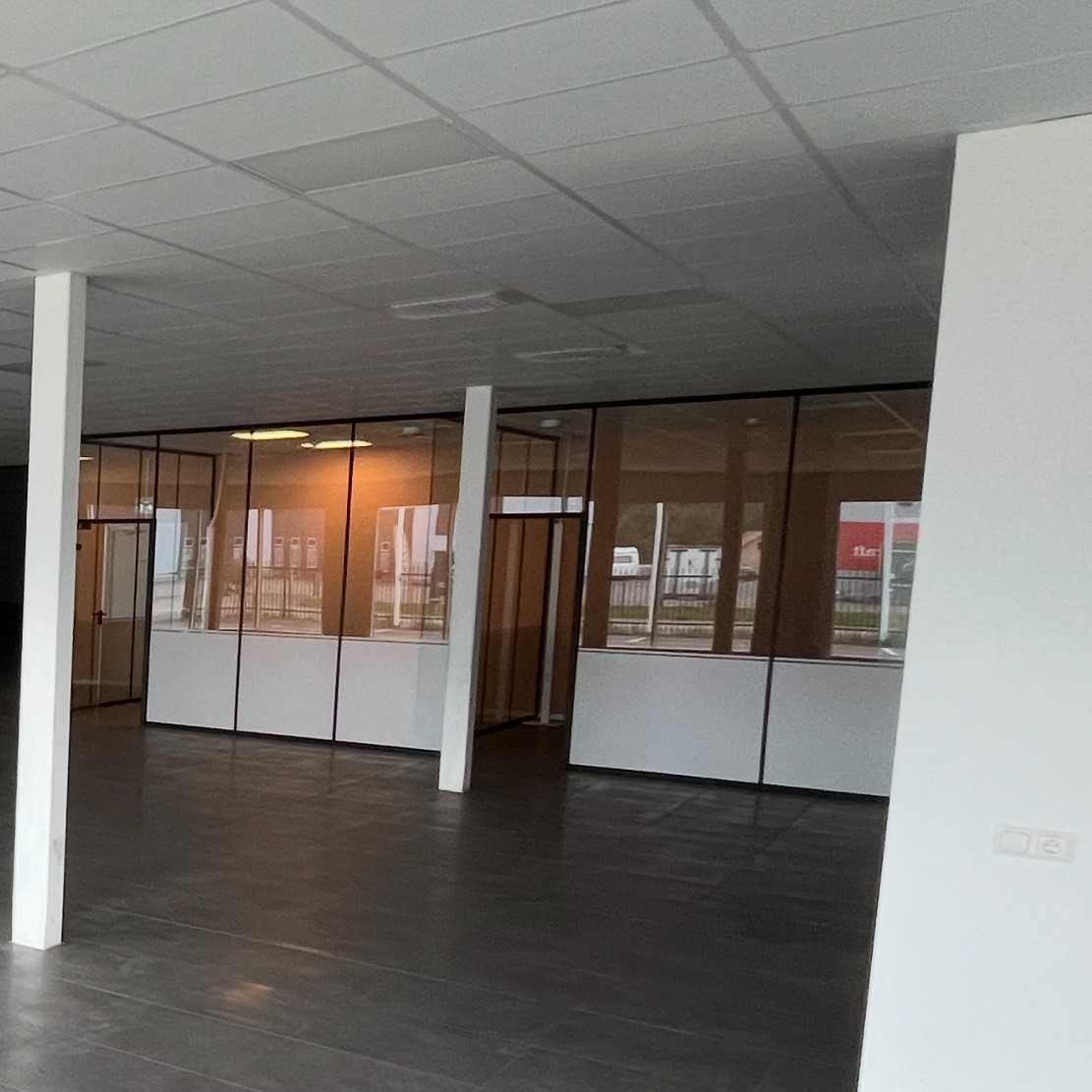 Bilder GLASKONTOR/GLASVÄGGAR till 2st kompletta intill liggande rum. 350x380cm x 2st. Bra ljudisolerat. Tjocklek ca 1cm. Nedmontrerat ligger på EU-pall.