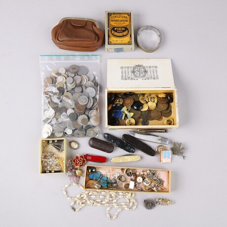 Pennknivar, mynt, bijouterier m.m.