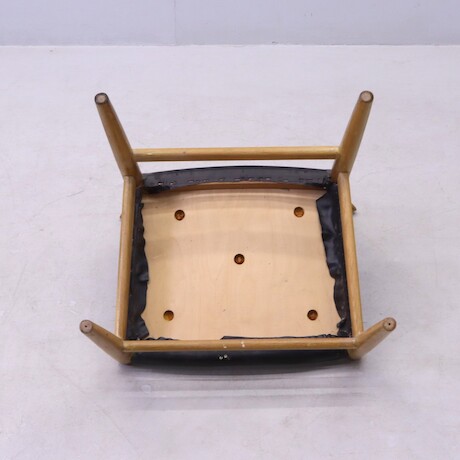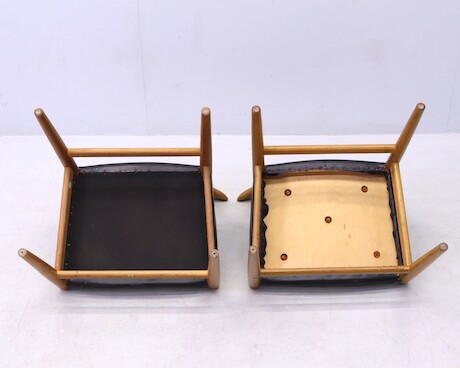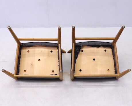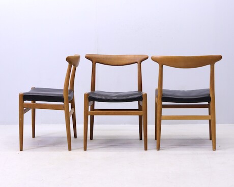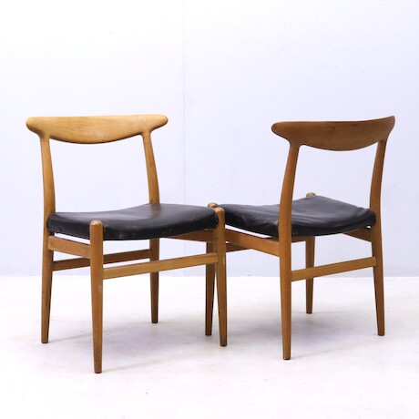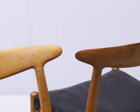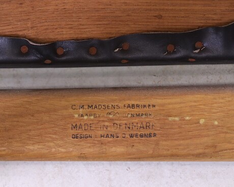 Bilder Hans J Wegner, stolar 5 st "W2" C M Madsen, Danmark 1950-tal. ek, stoppade och skinnklädda sitsar, brännstämplade "C.M. Madsens fabriker, Haarby, Danmark, Made in Denmark", Design Hans J Wegner"