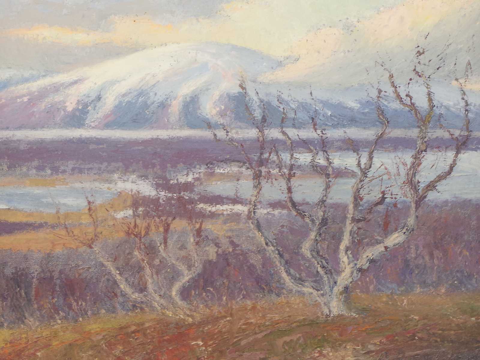 Auktioner Konst & Grafik TAVLA Arne Asplund, "Kall vårdag vid Stordalen", signerad & daterad 1951. 37x28cm bildytans mått