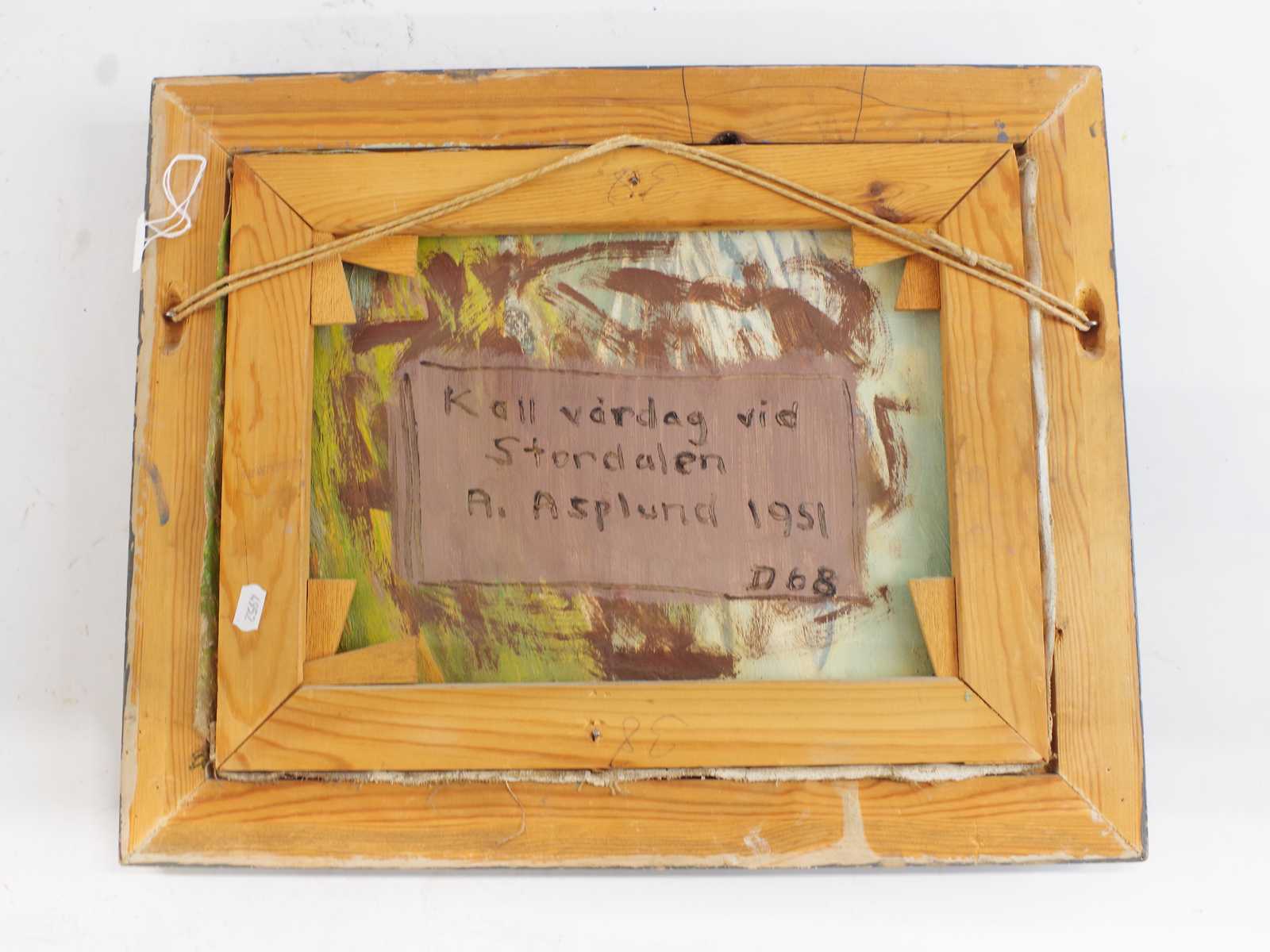 Bilder TAVLA Arne Asplund, "Kall vårdag vid Stordalen", signerad & daterad 1951. 37x28cm bildytans mått