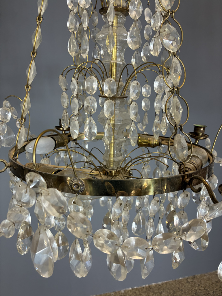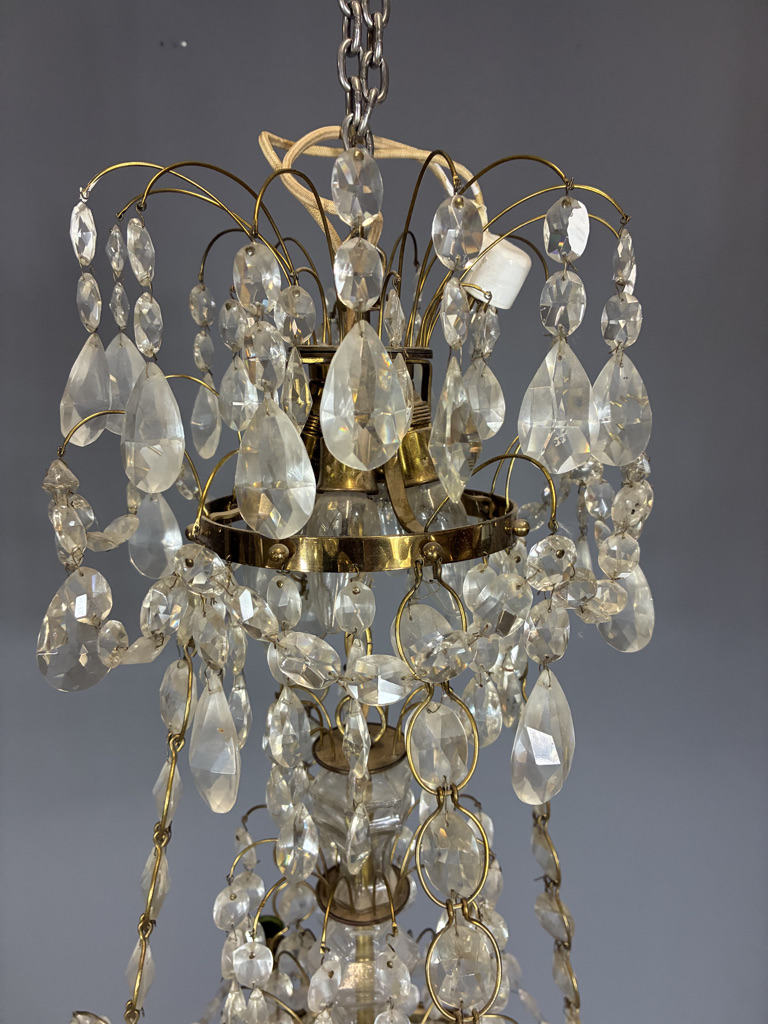 Krona i klassisk modell, smuts och saknade och utbytta prismor. Höjd:75cm
