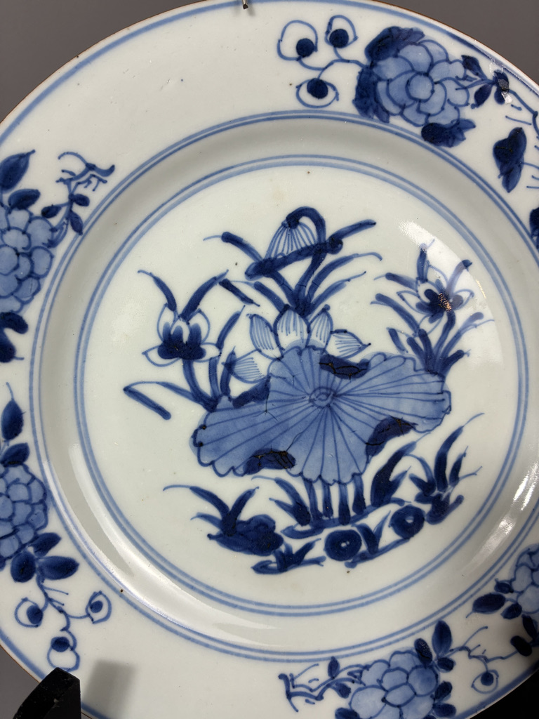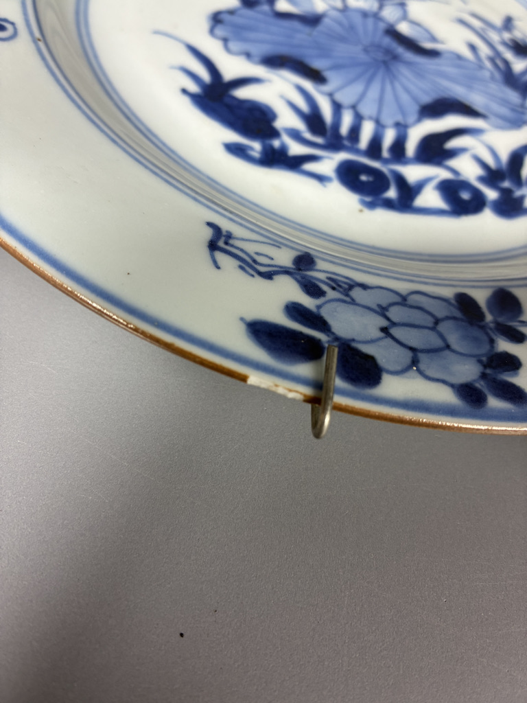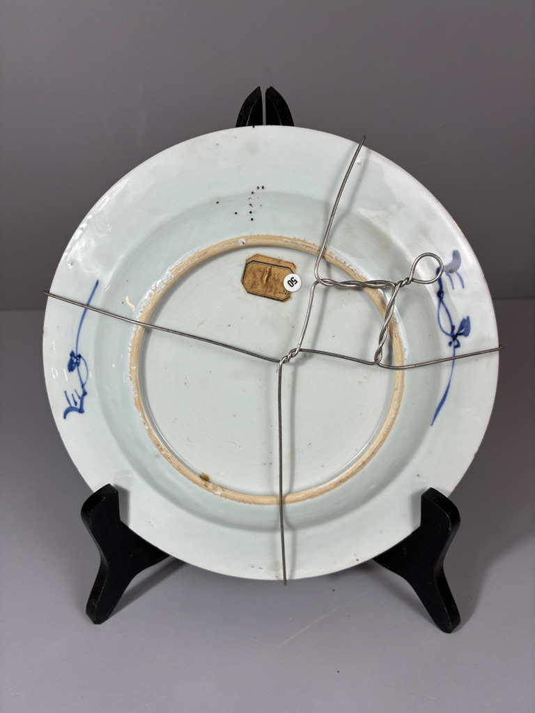 Kinesiskt porslin med blå dekor. Nagg och åldersslitage. Diameter:22cm.
