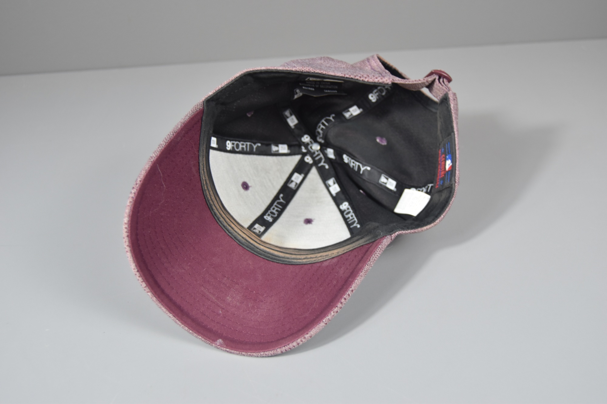 New Era Cap lila, sminkrester, begagnad.