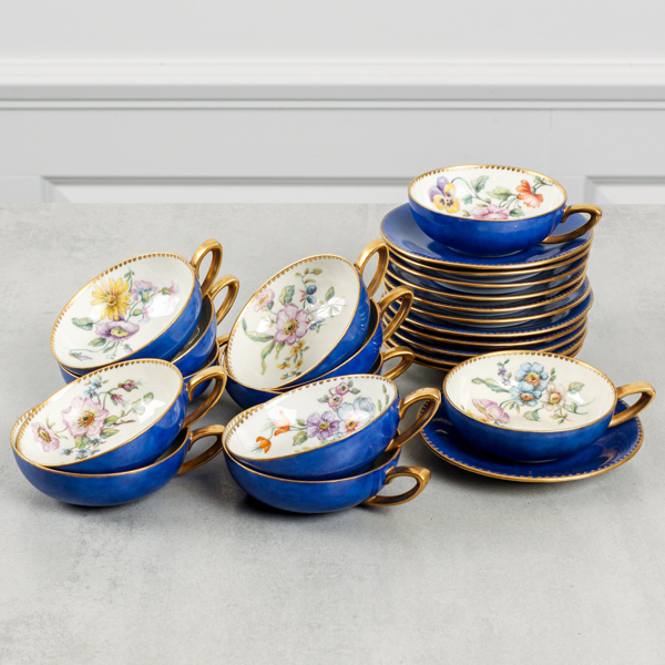 Kaffekoppar med fat, handmålad dekor av Else Wirström, daterade 1952, 12 dlr