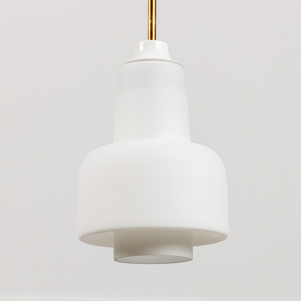 Taklampa, opalinglas och mässing, möjligen ASEA, 1940/50-tal