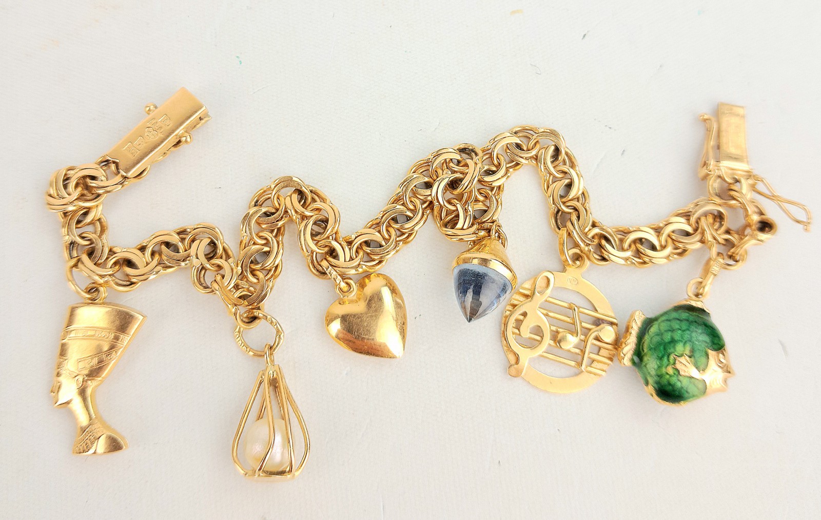 Bilder ARMBAND MED BERLOCKER, 18 K GULD, 1935, VIKT 14.7 GRAM