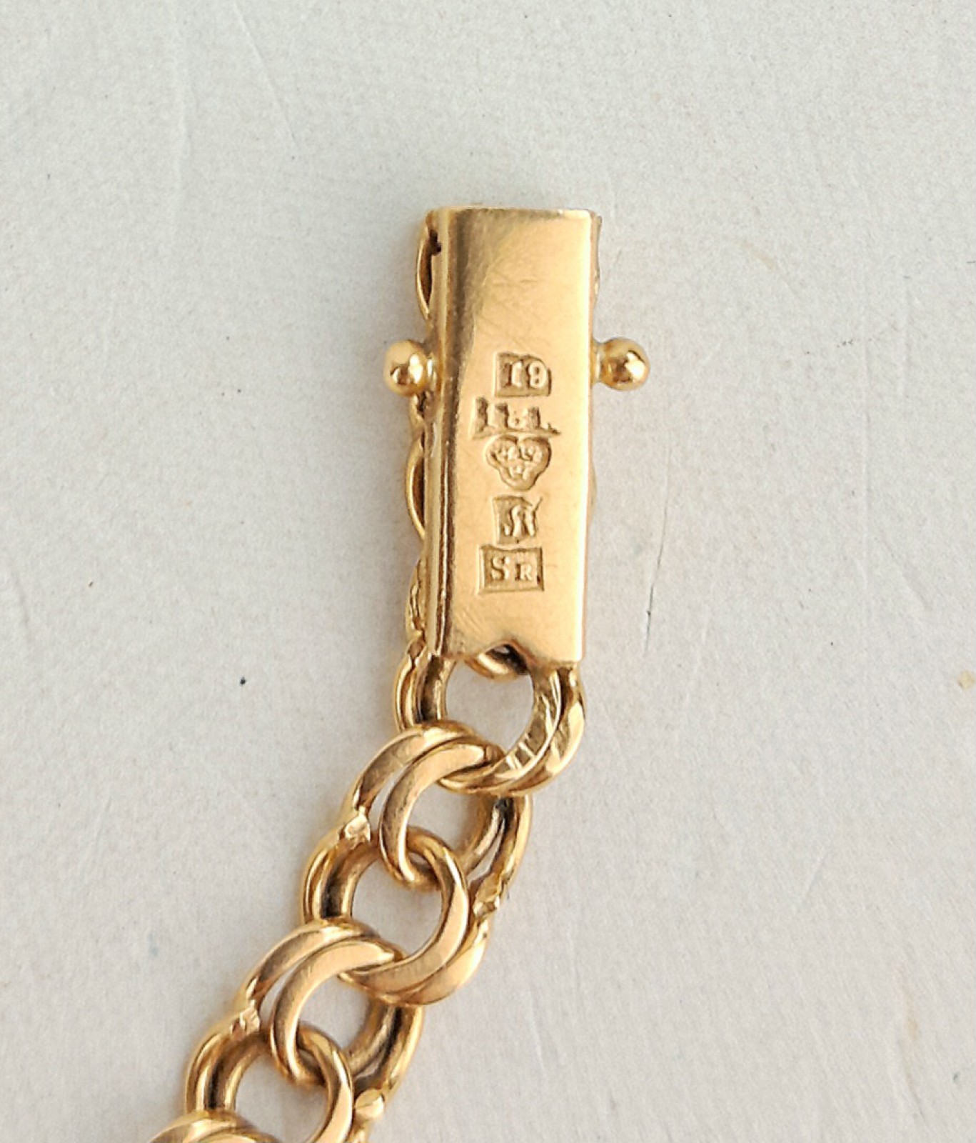 ARMBAND MED BERLOCKER, 18 K GULD, 1935, VIKT 14.7 GRAM