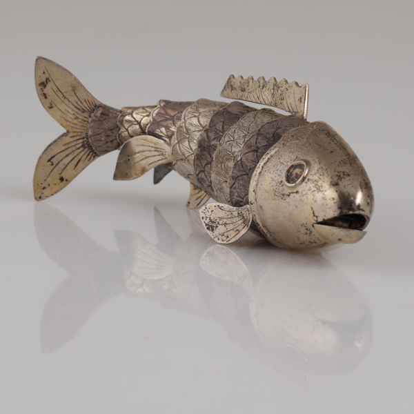 I form av fisk, ledad, stämplad, längd 14,5 cm, vikt ca 65 g