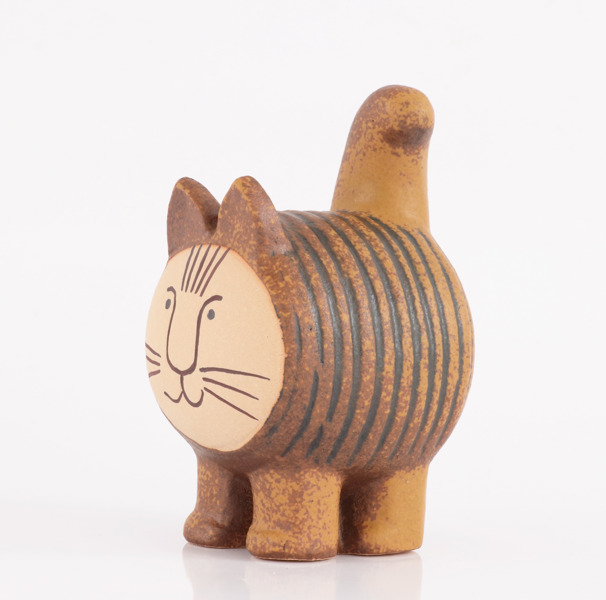 Stengods. I form av katt. Stämplad.