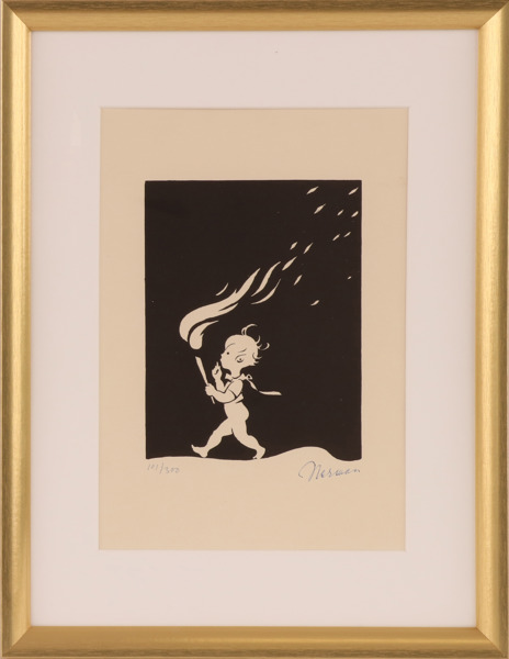 Litografi, "Solstickan". Signerat och numrerat. Inramat.