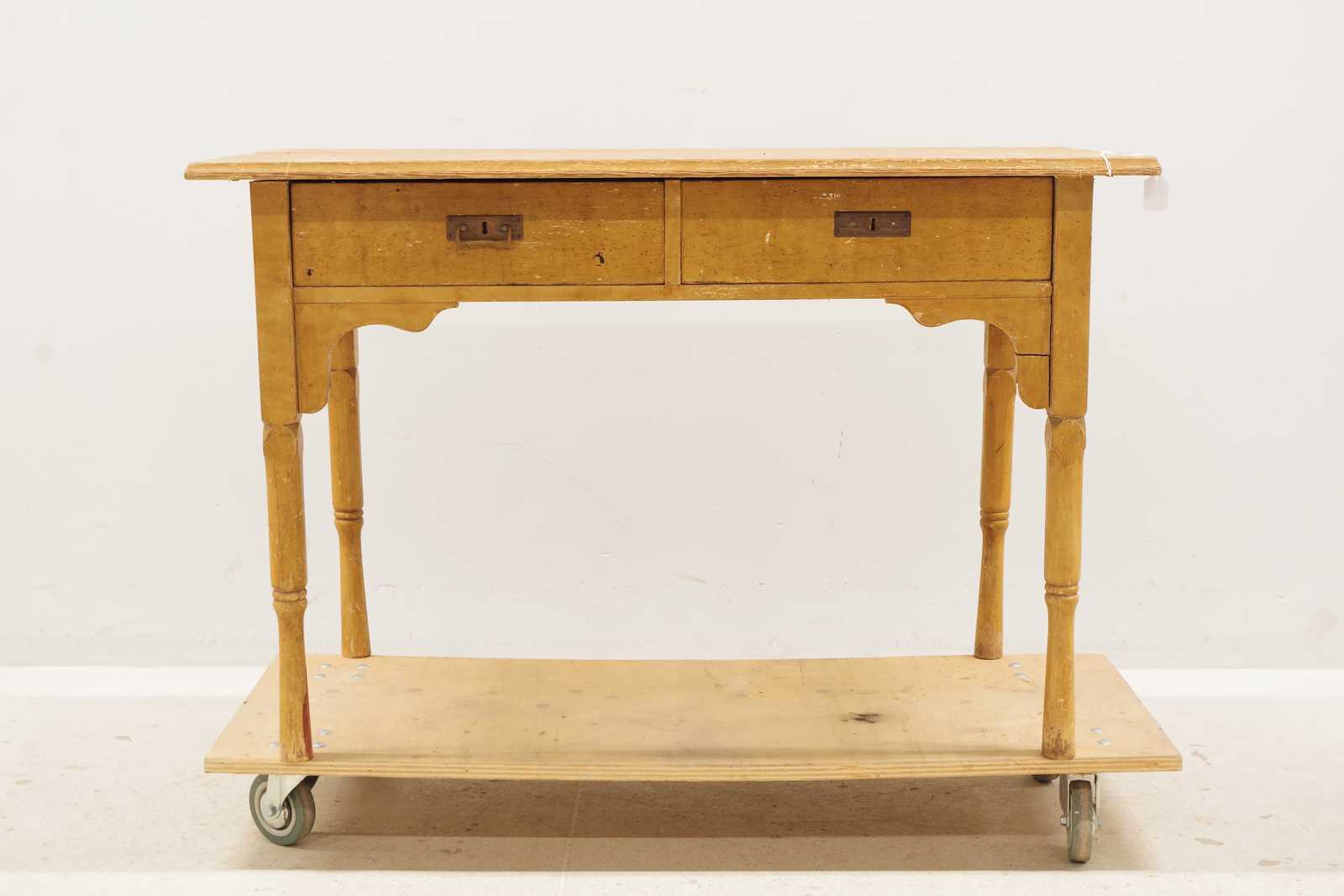 Auktioner BORD med 2st lådor, 1900 talets första hälft. H:73x 110x 63cm (slitage, borsskiva sitter lös)