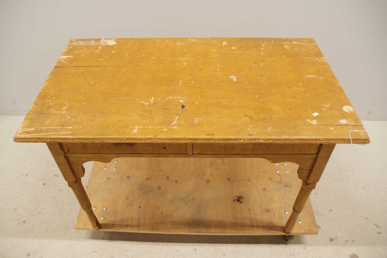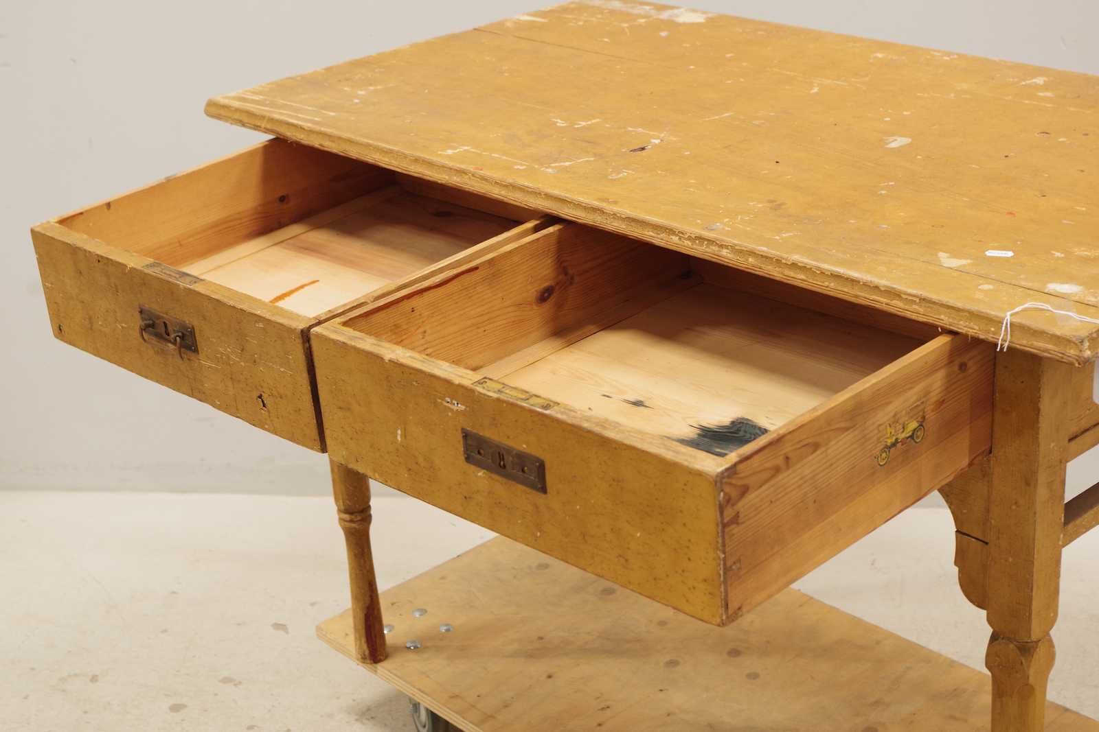BORD med 2st lådor, 1900 talets första hälft. H:73x 110x 63cm (slitage, borsskiva sitter lös)