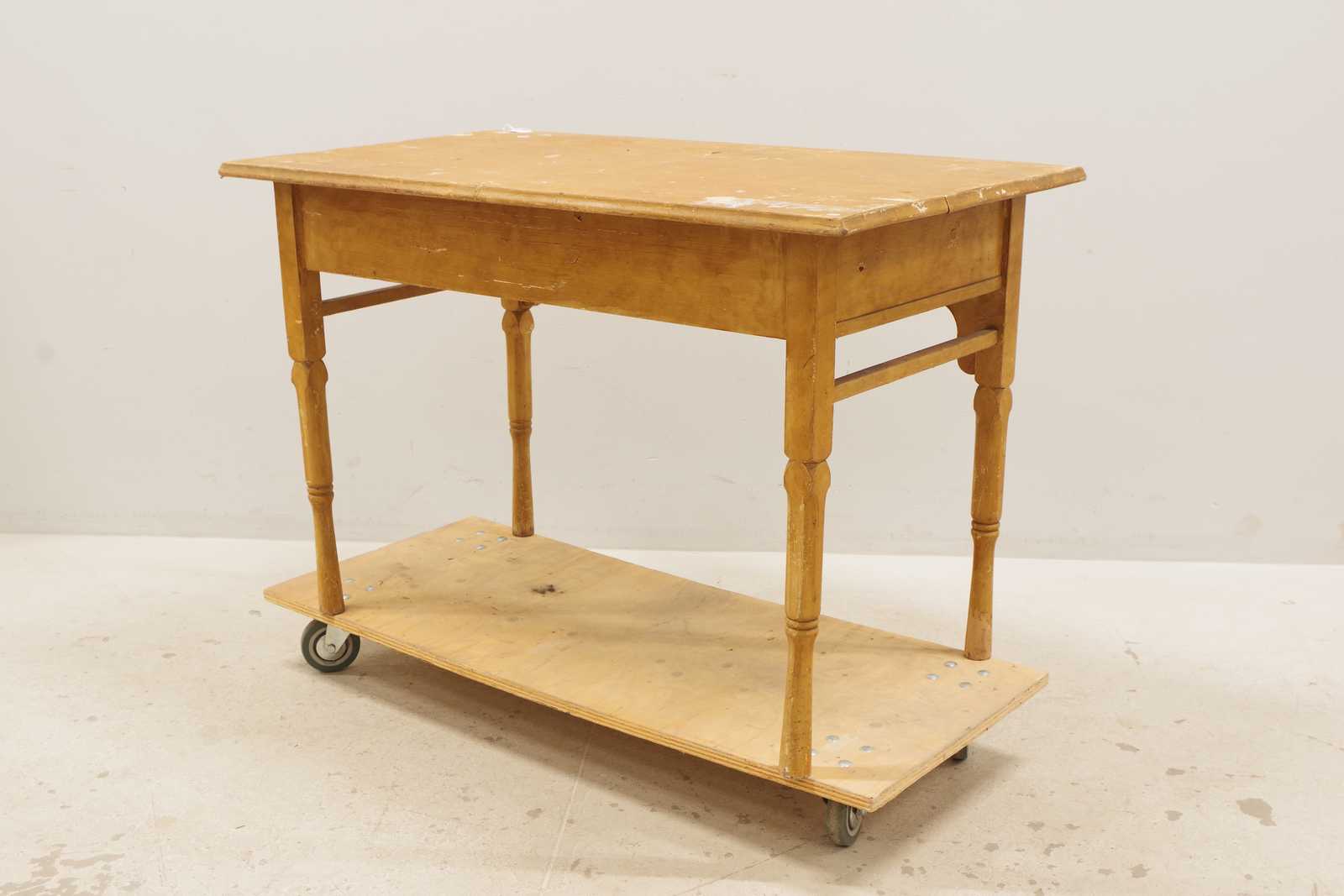 Bilder BORD med 2st lådor, 1900 talets första hälft. H:73x 110x 63cm (slitage, borsskiva sitter lös)