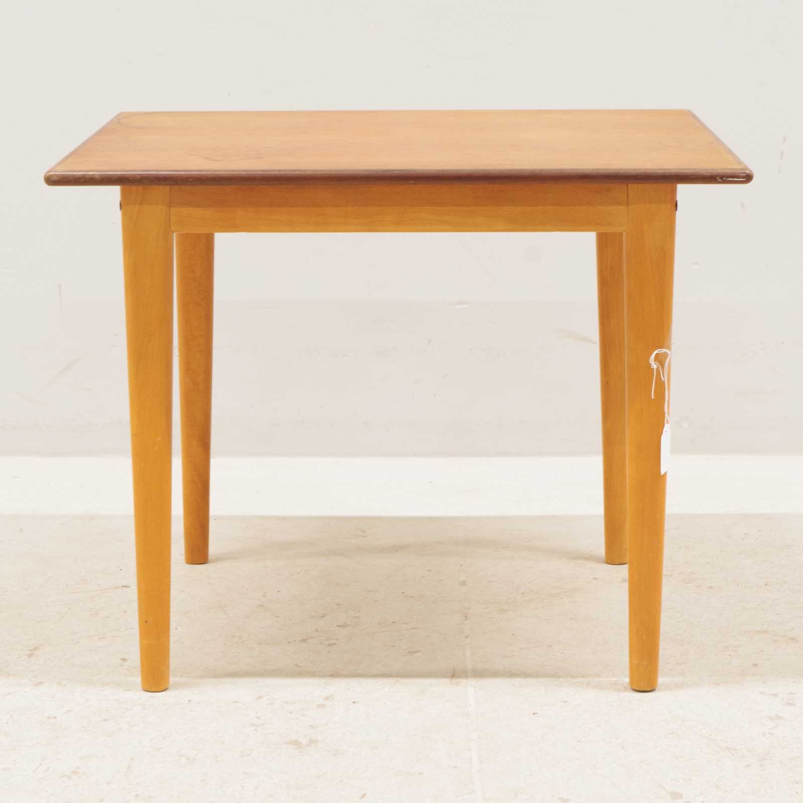 Auktioner SIDOBORD fanerat i teak, 1900 talets andra hälft. H:48x 60x 45cm (bruksslitage, fläckar förekommer)