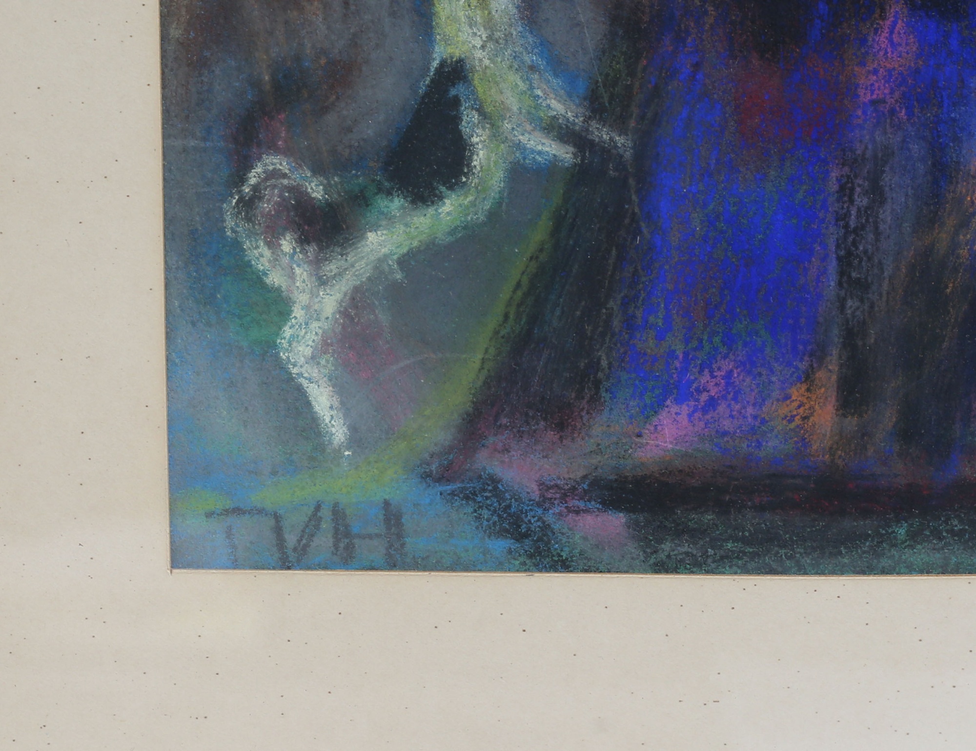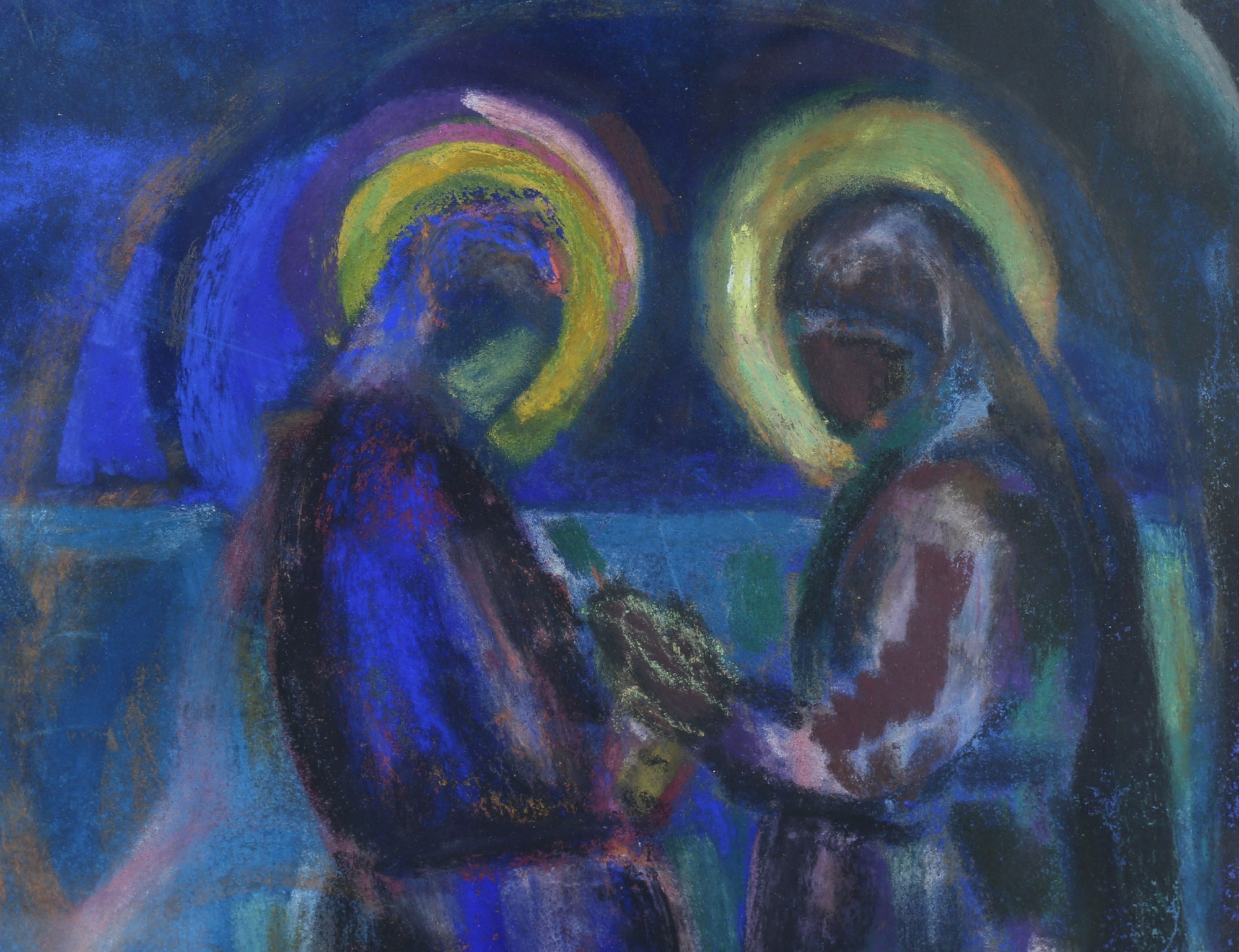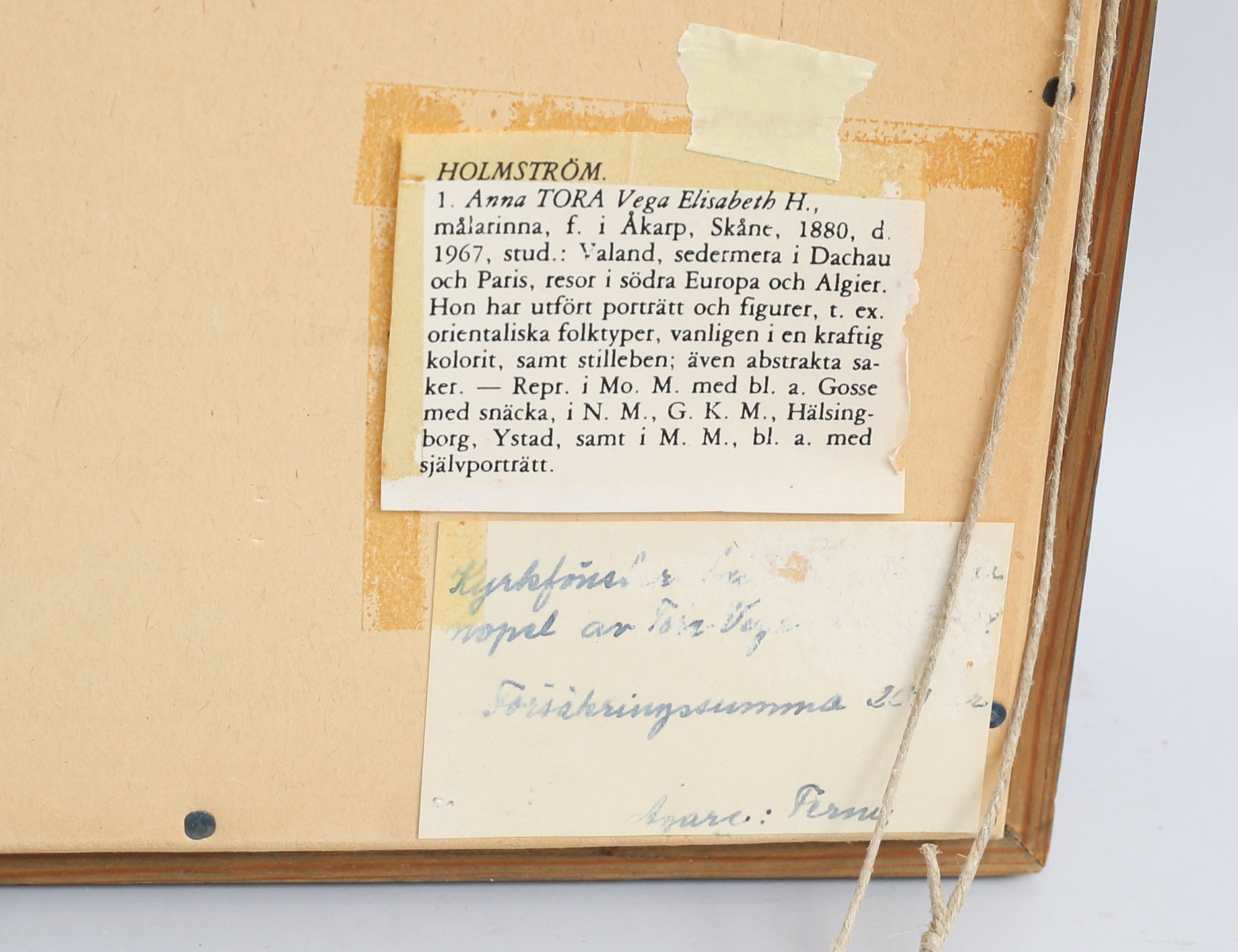 pastell, "Kyrkfönster", monogramsignerad, atergo etikett, 36x29, rammått 58x47